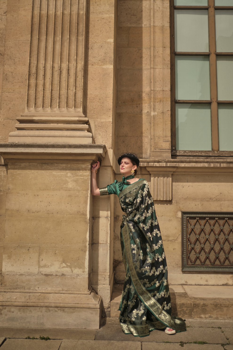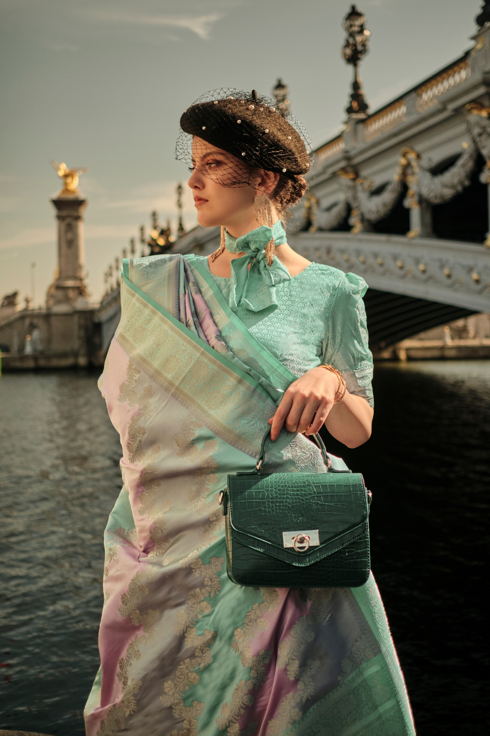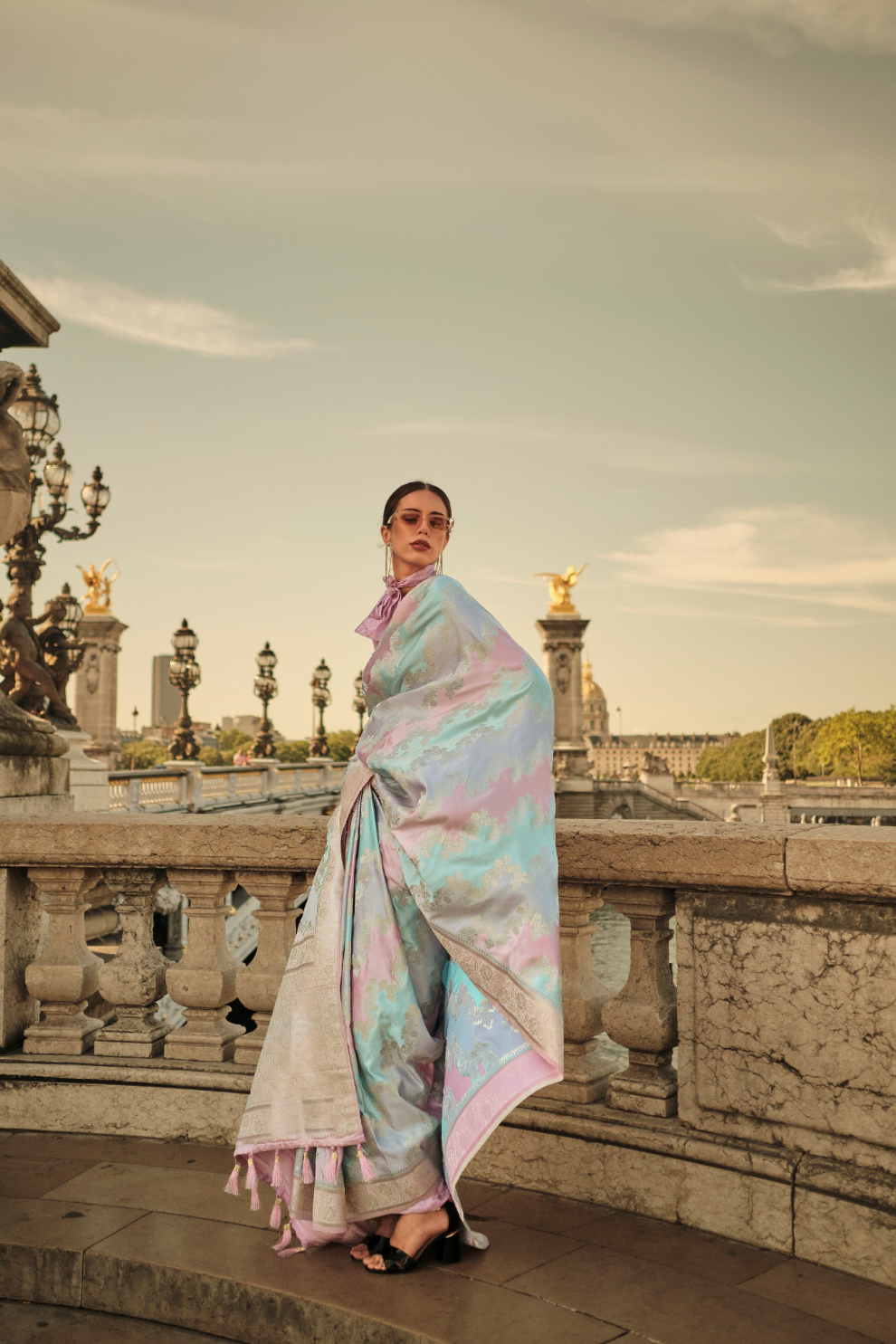Drape yourself in timeless elegance with this Banarasi Woven Satin Silk Blend Saree, designed to reflect regal sophistication and traditional artistry. The fabric features a luxurious satin finish, offering a soft and graceful fall that enhances your silhouette with every step. Intricate Banarasi weaving adds depth and richness, making it a perfect choice for weddings, festive celebrations, and grand cultural events. The pallu is adorned with delicate tassels, giving it a refined yet playful finish. Blending heritage charm with modern grace, this saree is a wardrobe essential. Step into the spotlight with LaVante Fashion.