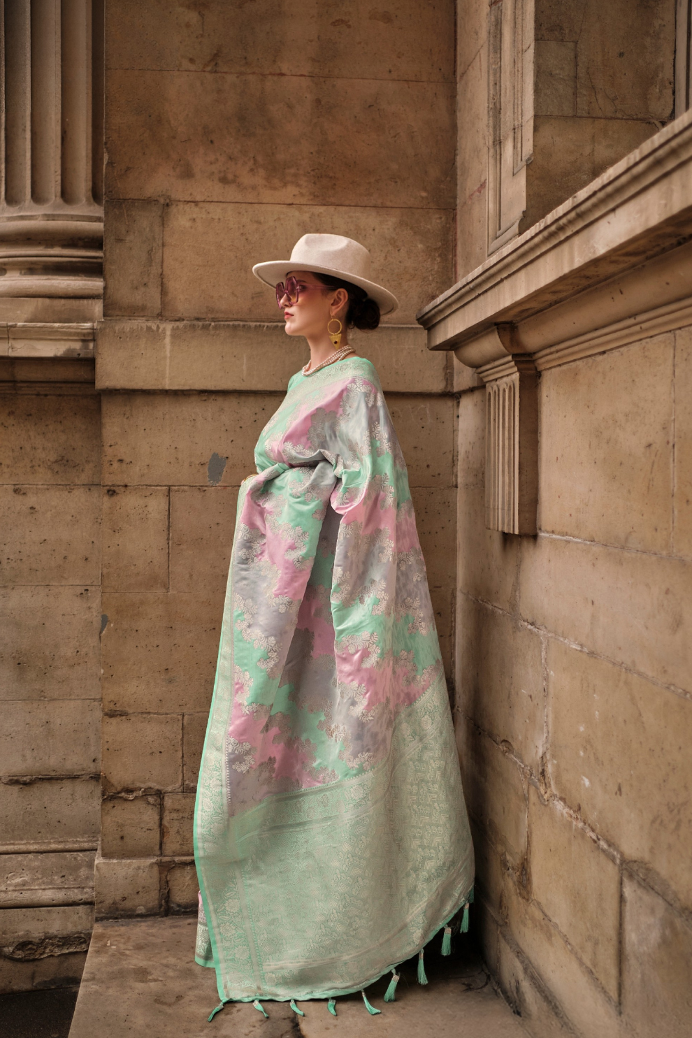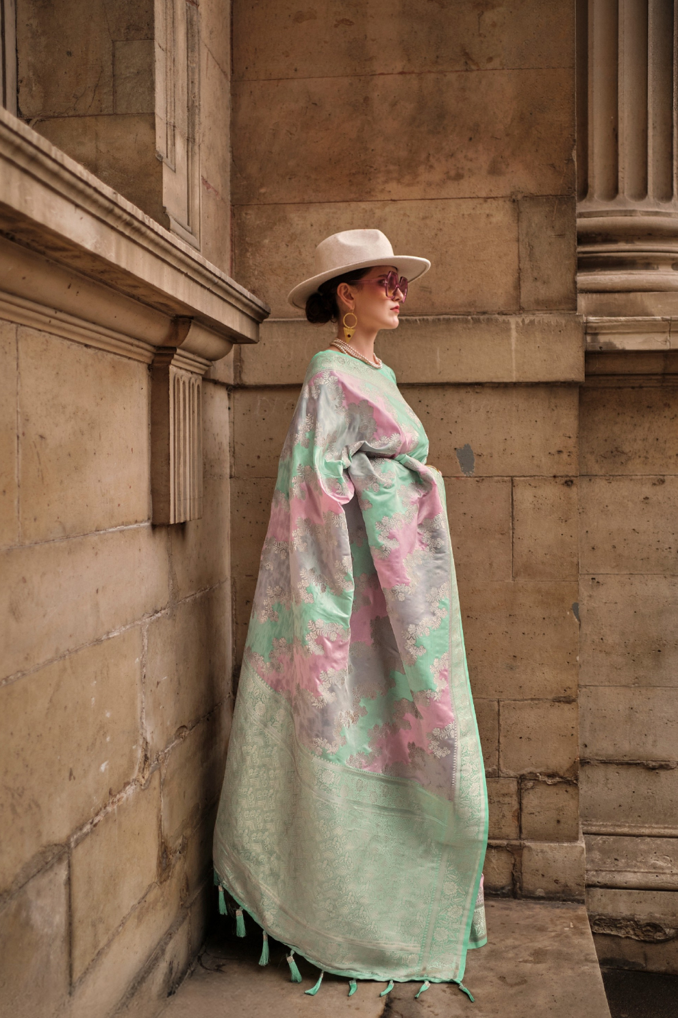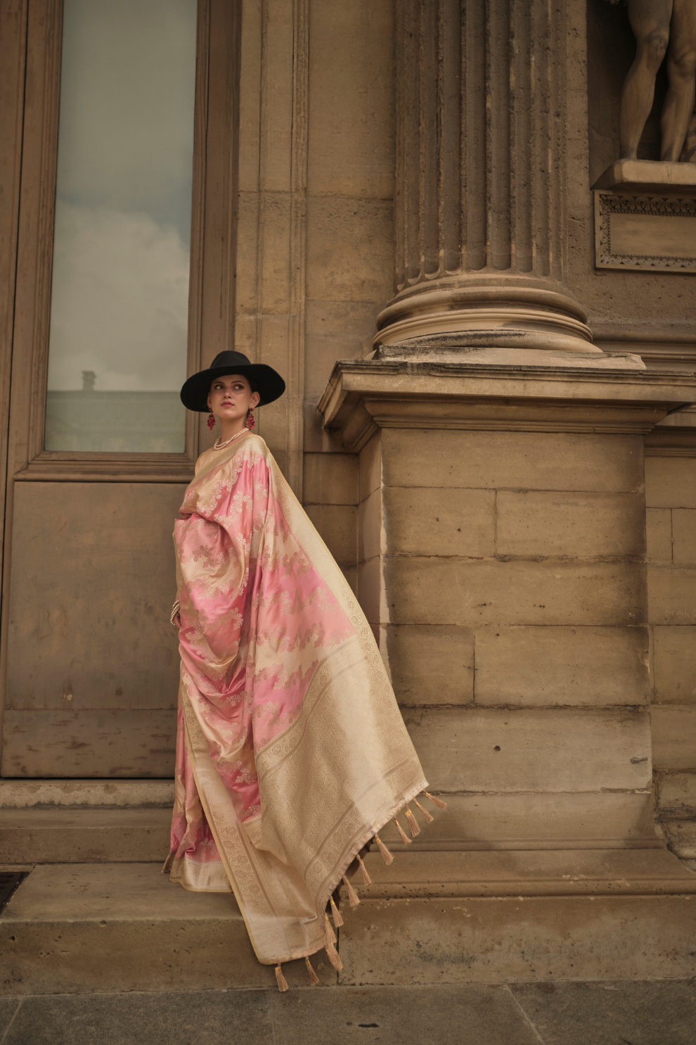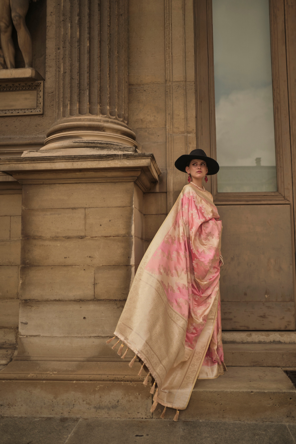 Drape yourself in timeless elegance with this Banarasi Woven Satin Silk Blend Saree, designed to reflect regal sophistication and traditional artistry. The fabric features a luxurious satin finish, offering a soft and graceful fall that enhances your silhouette with every step. Intricate Banarasi weaving adds depth and richness, making it a perfect choice for weddings, festive celebrations, and grand cultural events. The pallu is adorned with delicate tassels, giving it a refined yet playful finish. Blending heritage charm with modern grace, this saree is a wardrobe essential. Step into the spotlight with LaVante Fashion.