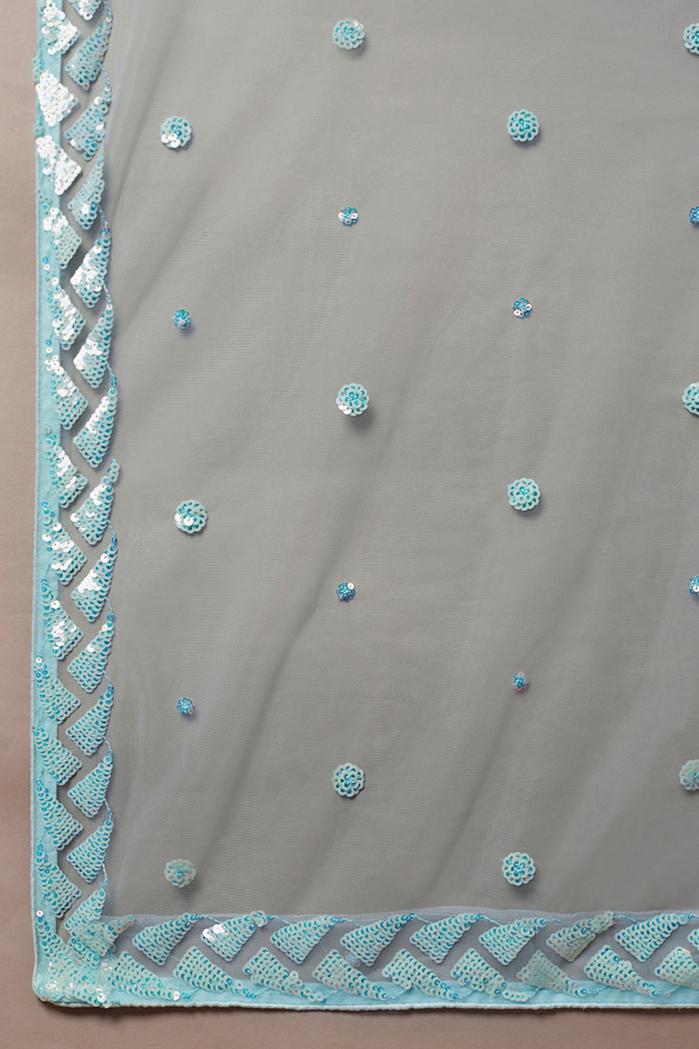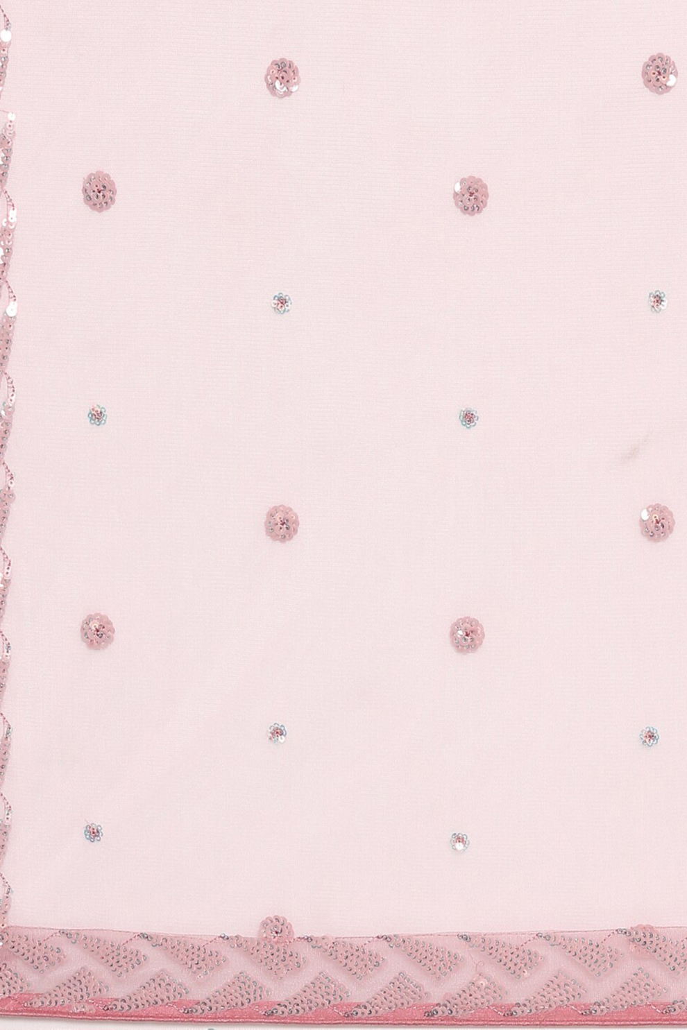 Fabric (Dupatta): Soft net with embroidered border and sequin detailing
