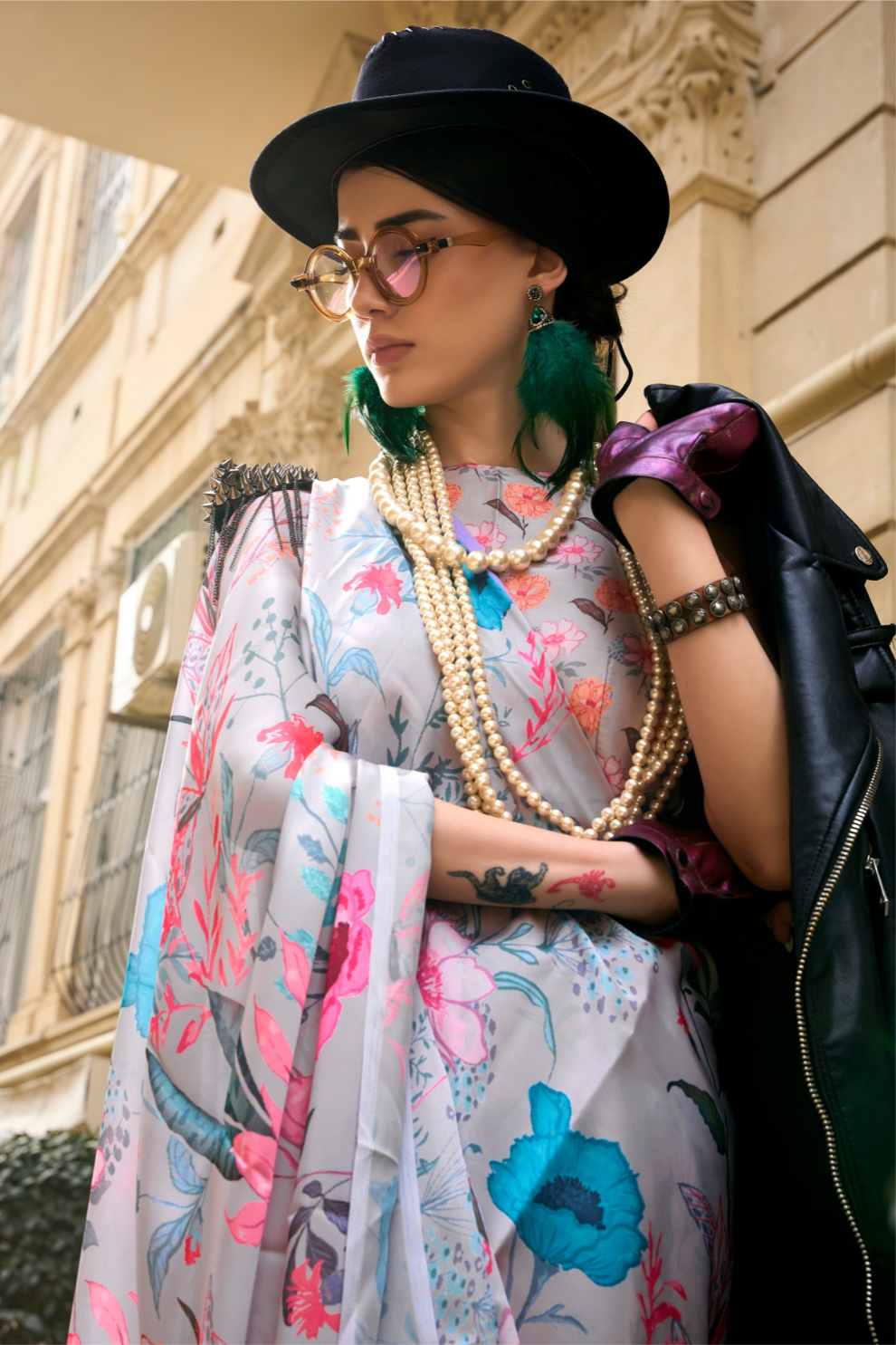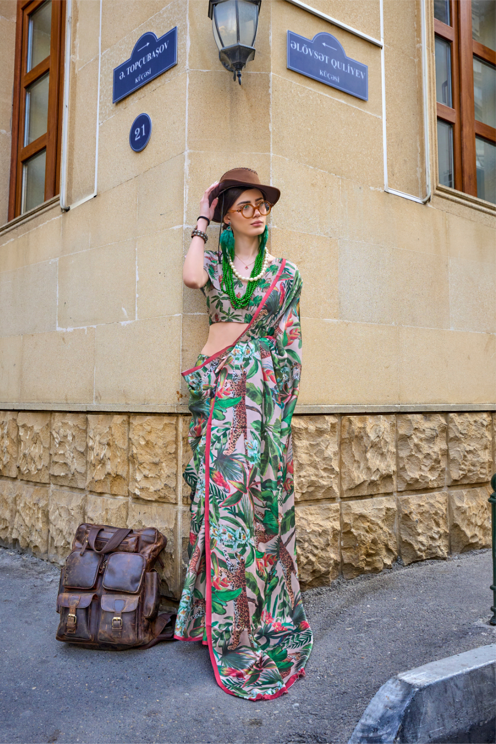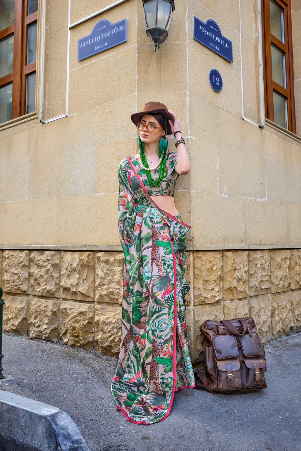 Add a splash of elegance to your everyday look with this Casual Wear Satin Georgette Saree with Beautiful Digital Print. The fabric blends the smooth texture of satin with the lightness of georgette, creating a graceful drape that's perfect for casual outings, workwear, or small gatherings. Its vibrant digital prints lend a modern and stylish appeal while ensuring all-day comfort. This saree is ideal for women who prefer effortless fashion with a touch of sophistication. Redefine everyday ethnic style with LaVante Fashion.