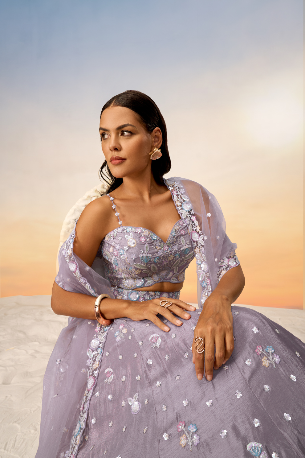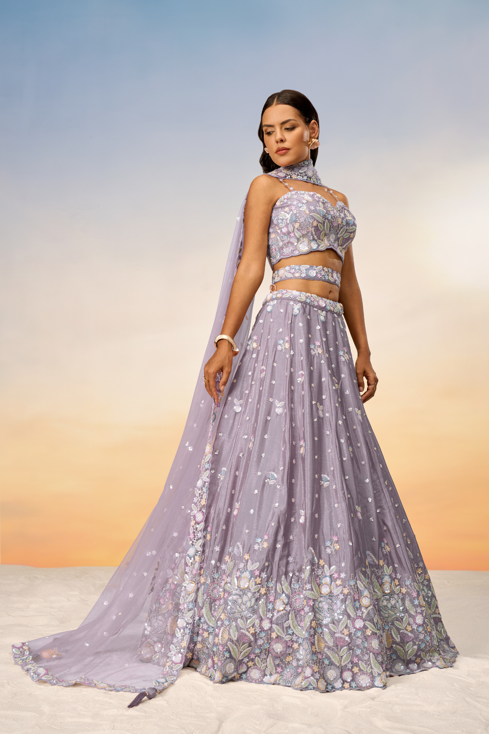 Fabric (Lehenga): Soft Chiffon with Sequins and Thread Embroidery