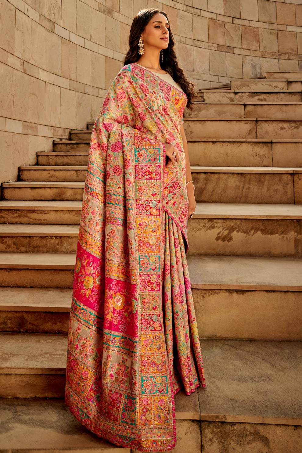 Classic Pashmina Silk Saree with Rich Kashmiri Craftsmanship