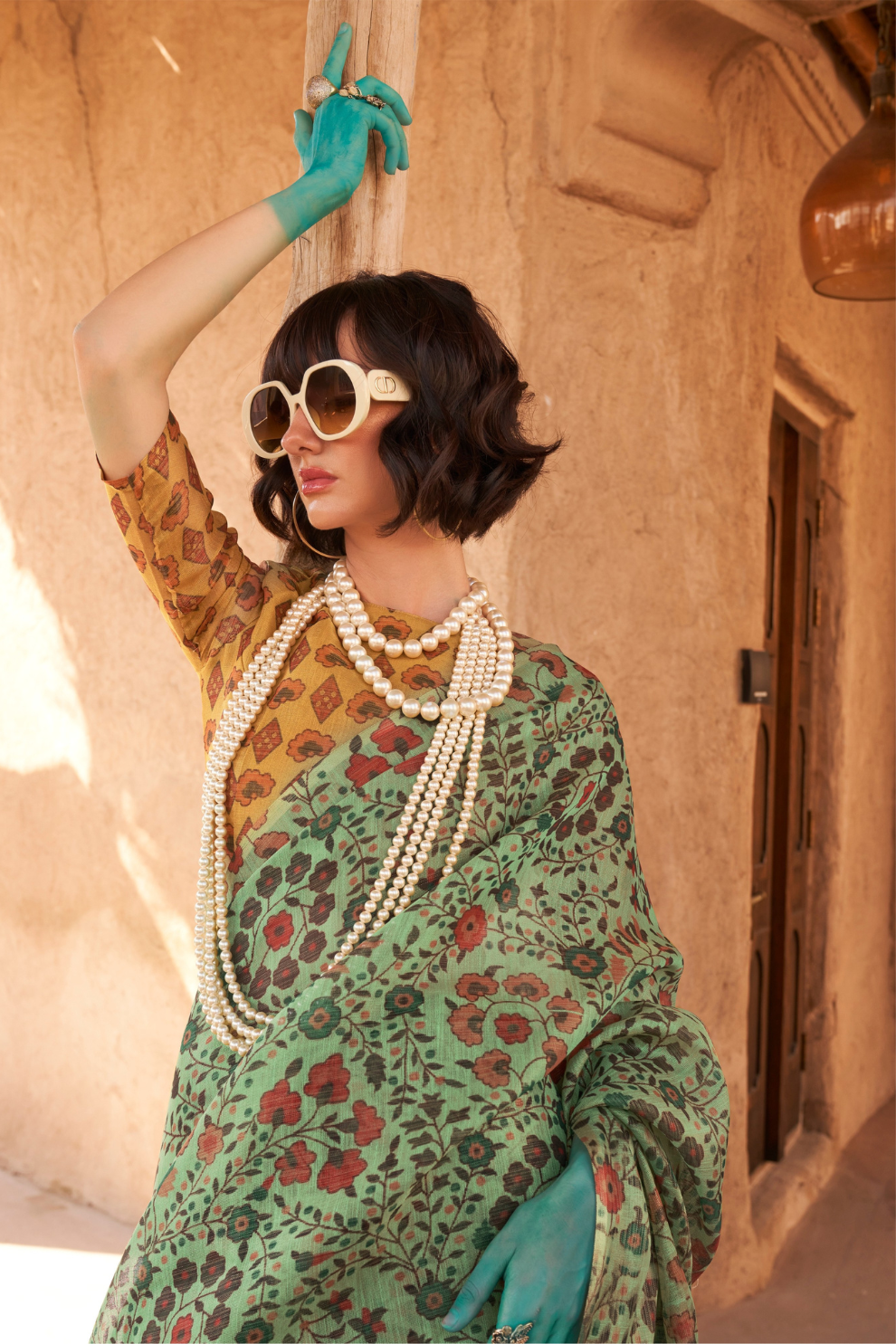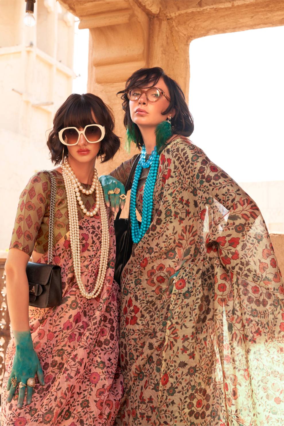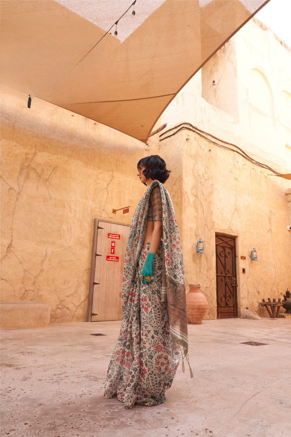 Digital Printed Tissue Silk Saree with Subtle Zari Shine