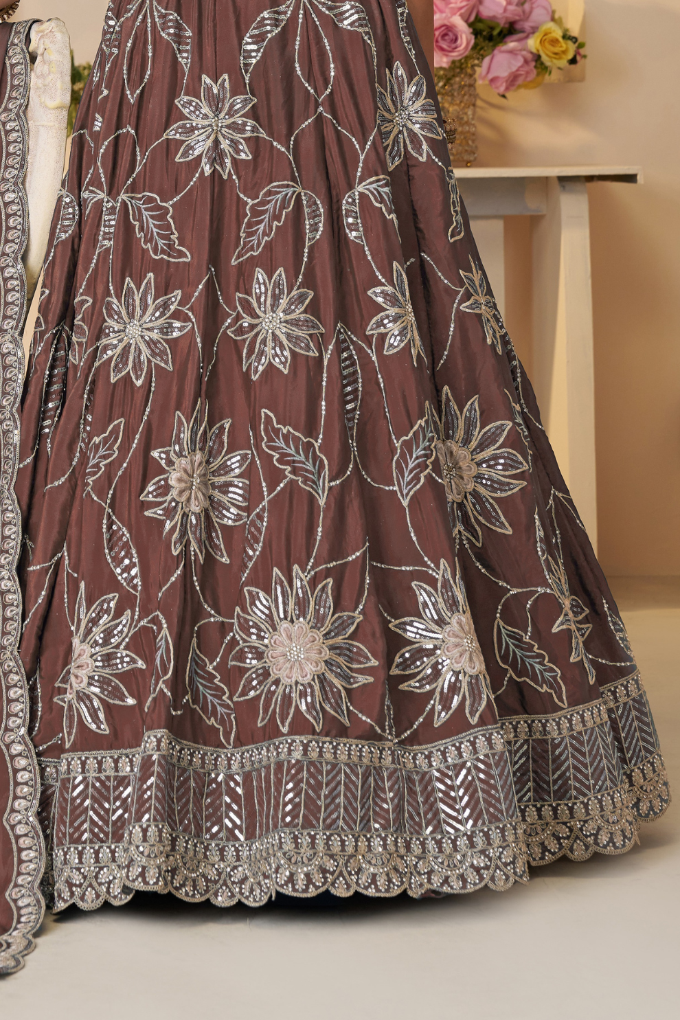 Fabric (Lehenga): Silk with intricate paisley embroidery