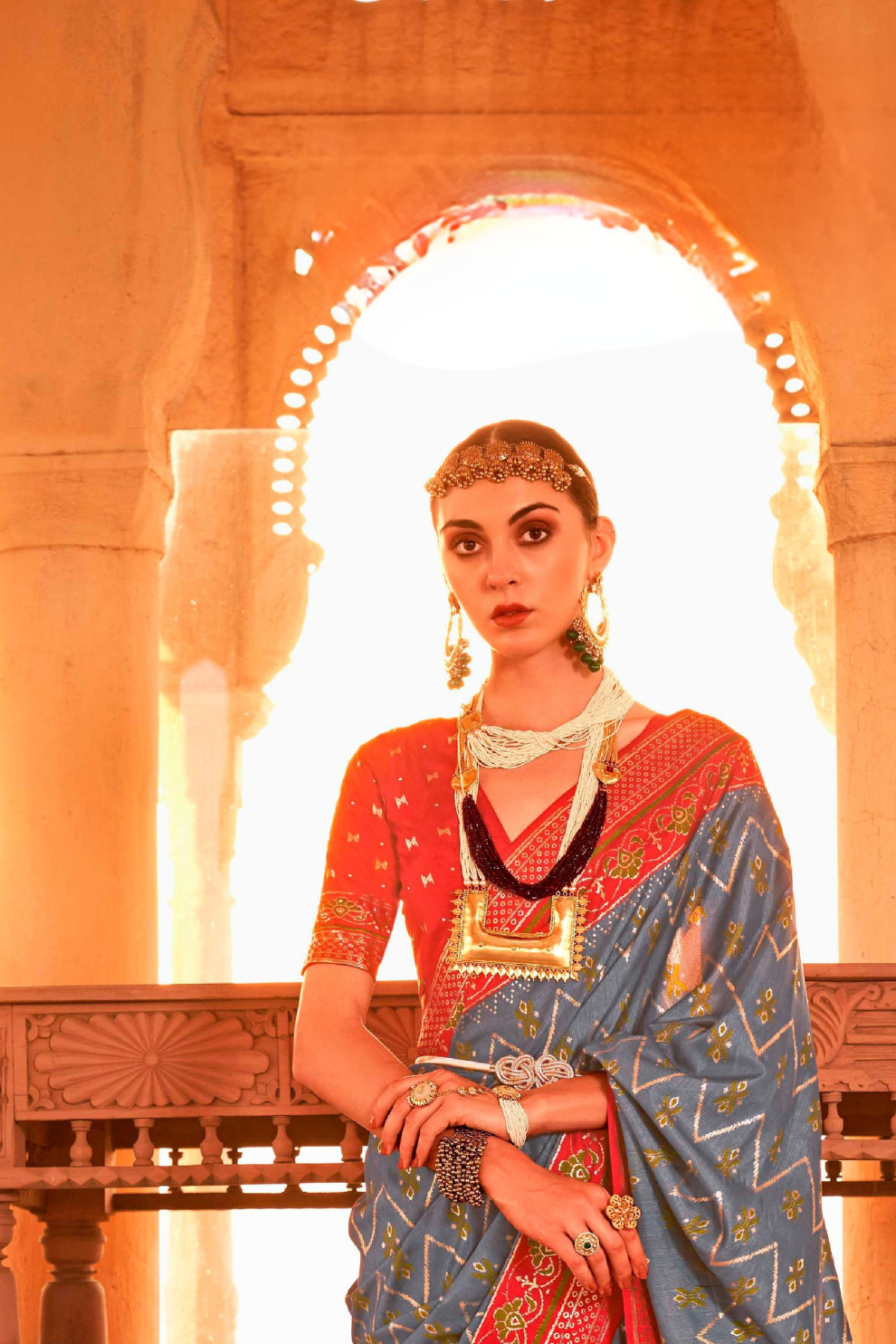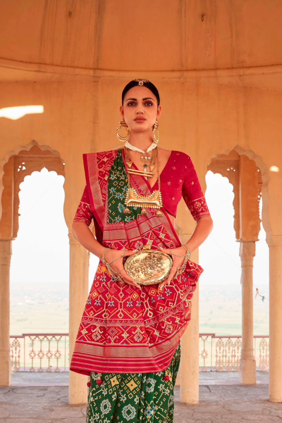 This elegant Patola printed art silk saree showcases intricate craftsmanship with vibrant traditional patterns that add a touch of cultural richness. The soft art silk fabric ensures a comfortable and graceful drape, making it perfect for festive occasions and celebrations. The detailed prints combined with a beautifully designed border highlight the saree’s timeless appeal. Offered by LaVante Fashion, this saree blends classic artistry with modern elegance for a stunning look.