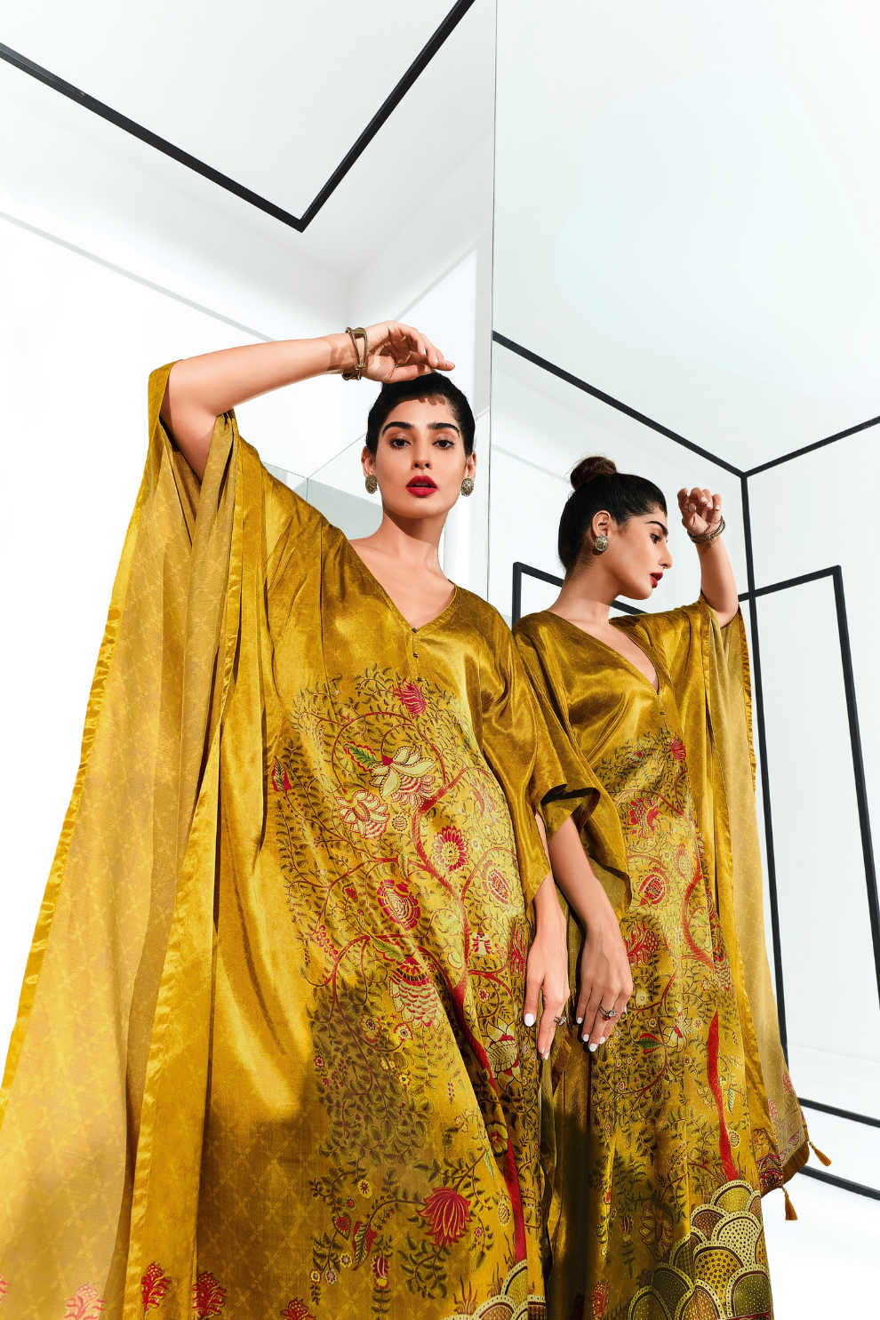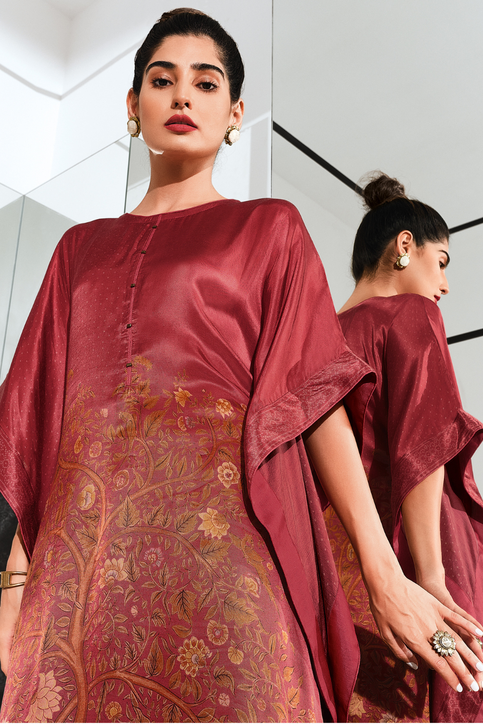 Step into effortless elegance with this Gaji silk printed kaftan top, featuring a fluid silhouette and exquisite traditional patterns. The soft sheen of the premium Gaji silk enhances the charm of the kaftan, making it ideal for both casual gatherings and festive occasions. Paired with a breathable cotton bottom, this ensemble ensures comfort and grace throughout the day. The relaxed fit and stylish design offer a perfect fusion of heritage and modern ease. Presented by LaVante Fashion, where timeless fashion meets contemporary flair.