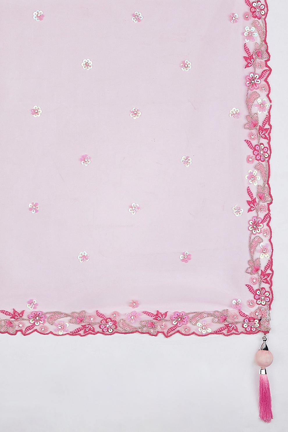 Fabric (Dupatta): Pure Georgette with Sequins Detailing and Embroidered Border (2.5 meters, matching or contrast as available)
