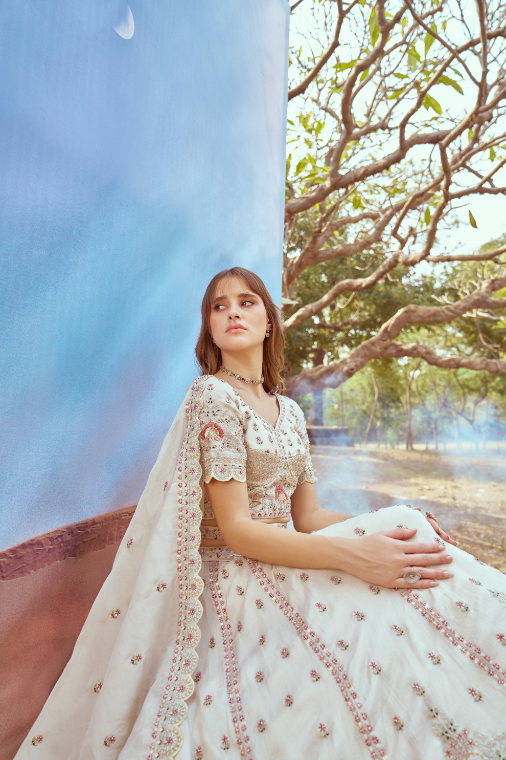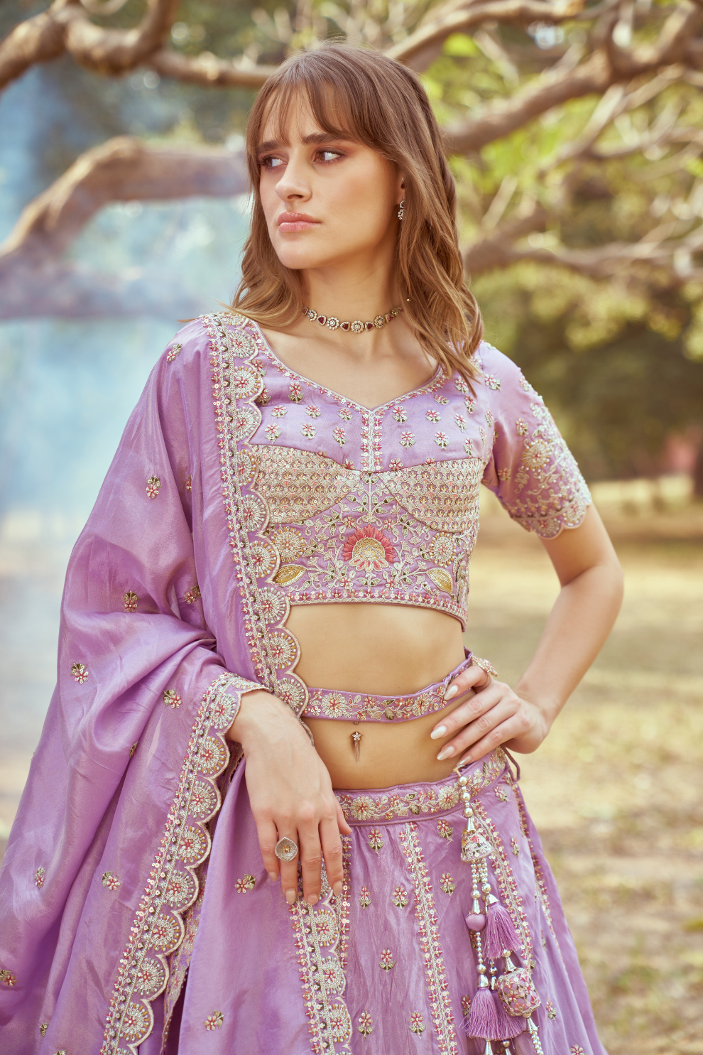Fabric (Lehenga): Crushed Tissue with Moti and Zari Embellishment