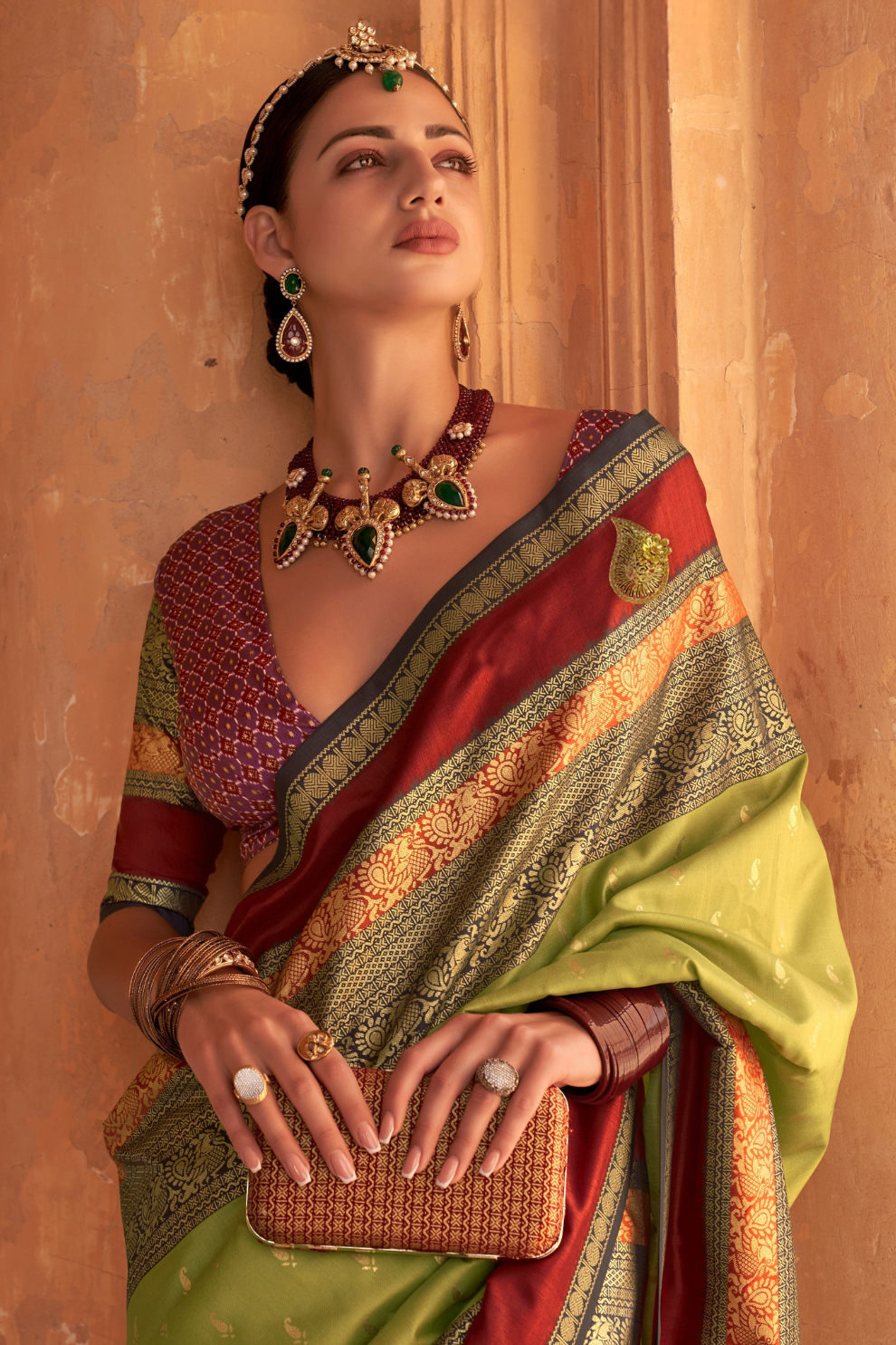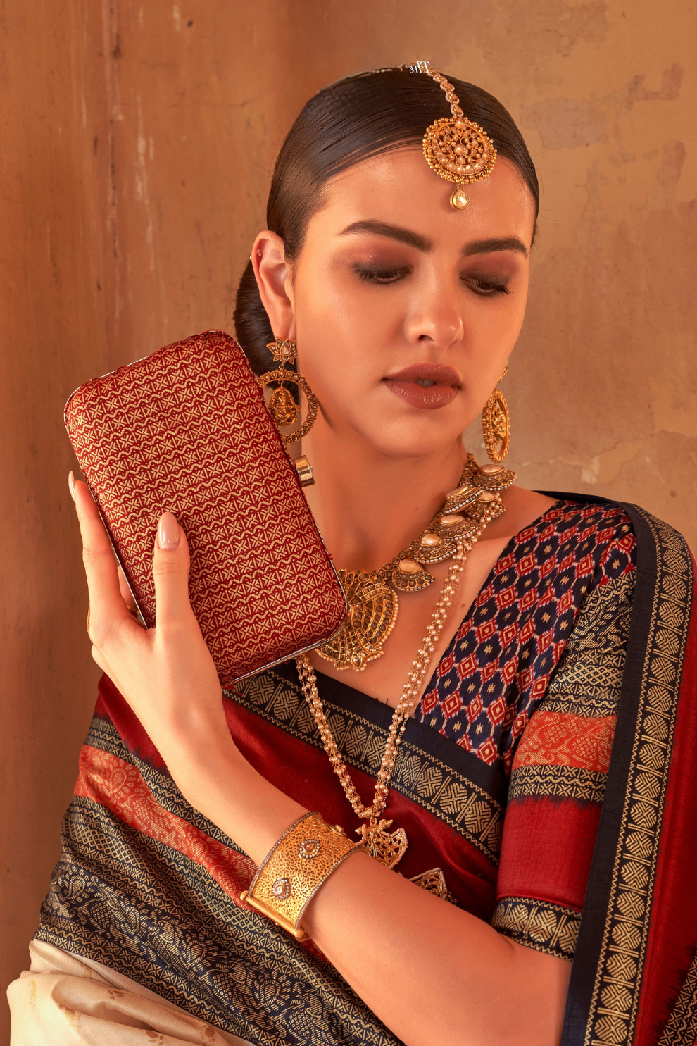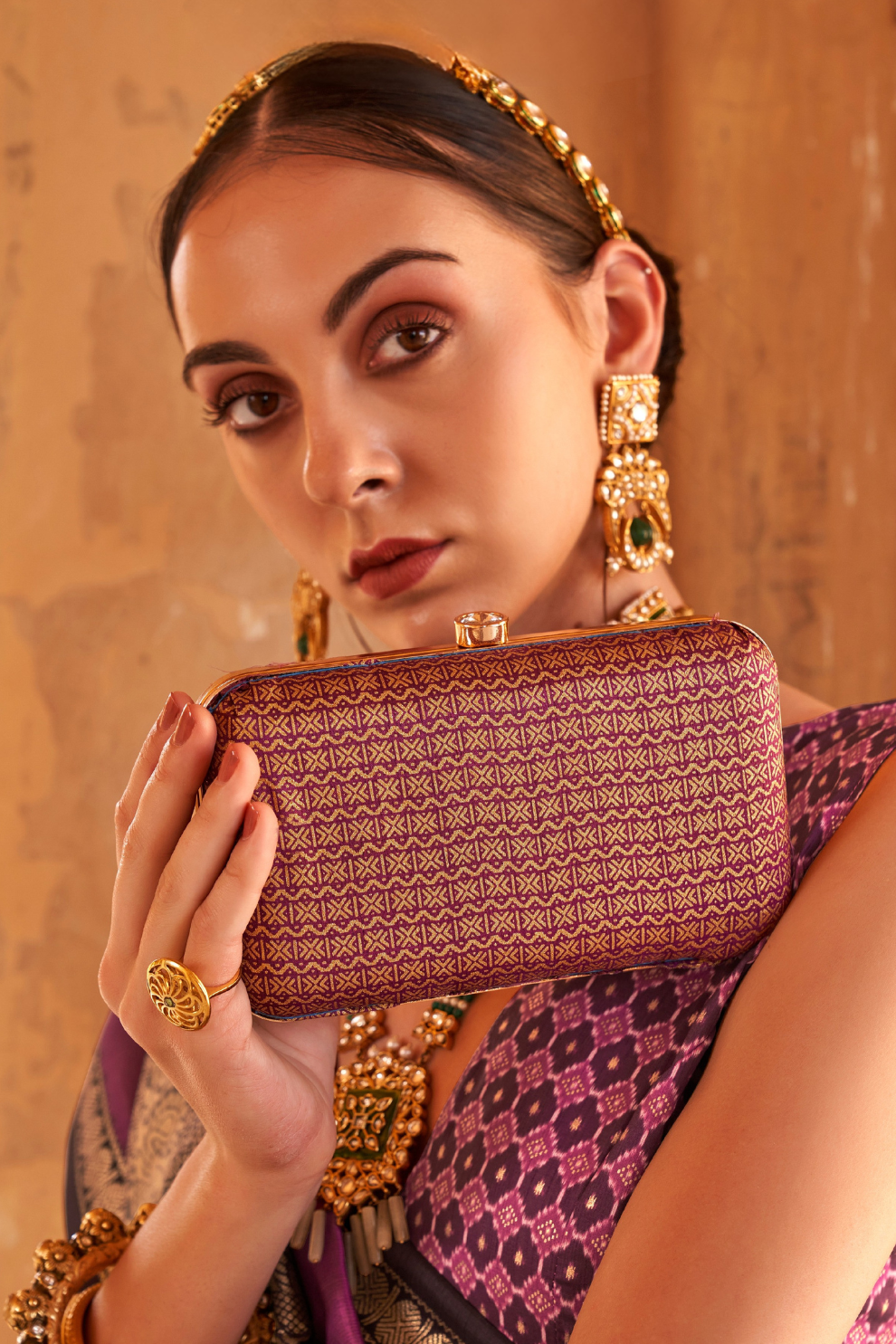 Kanjivaram Style Silk Saree with Designer Brooch and Clutch