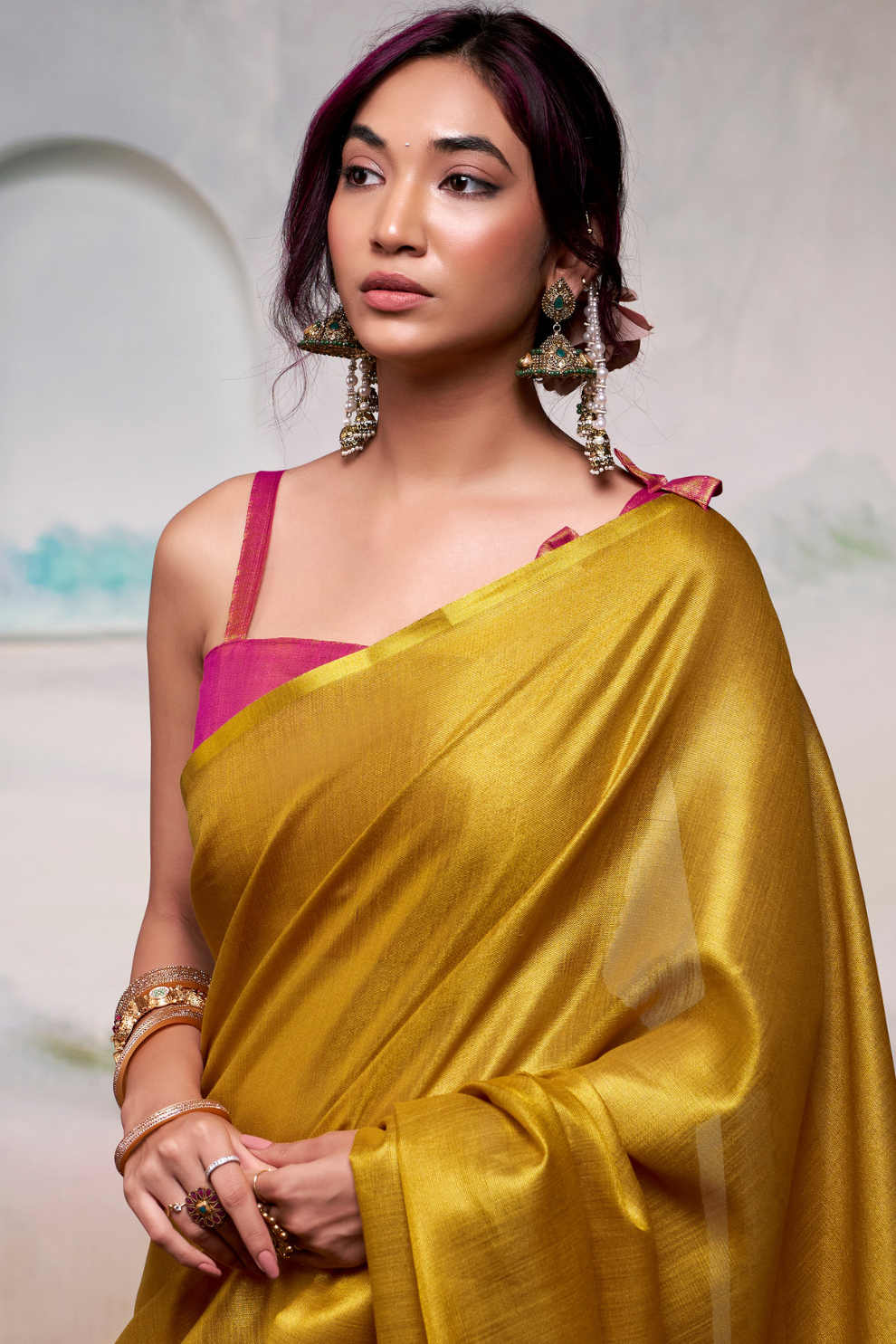 Crafted from premium quality tissue silk, this saree boasts a luxurious sheen and a lightweight feel, making it perfect for festive occasions, weddings, and evening gatherings. Its translucent texture and graceful drape enhance your silhouette, while the intricate detailing adds just the right touch of sophistication.Whether you're dressing up for a celebration or gifting someone special, this saree from LaVante Fashion is a statement of refined style and ethnic charm.