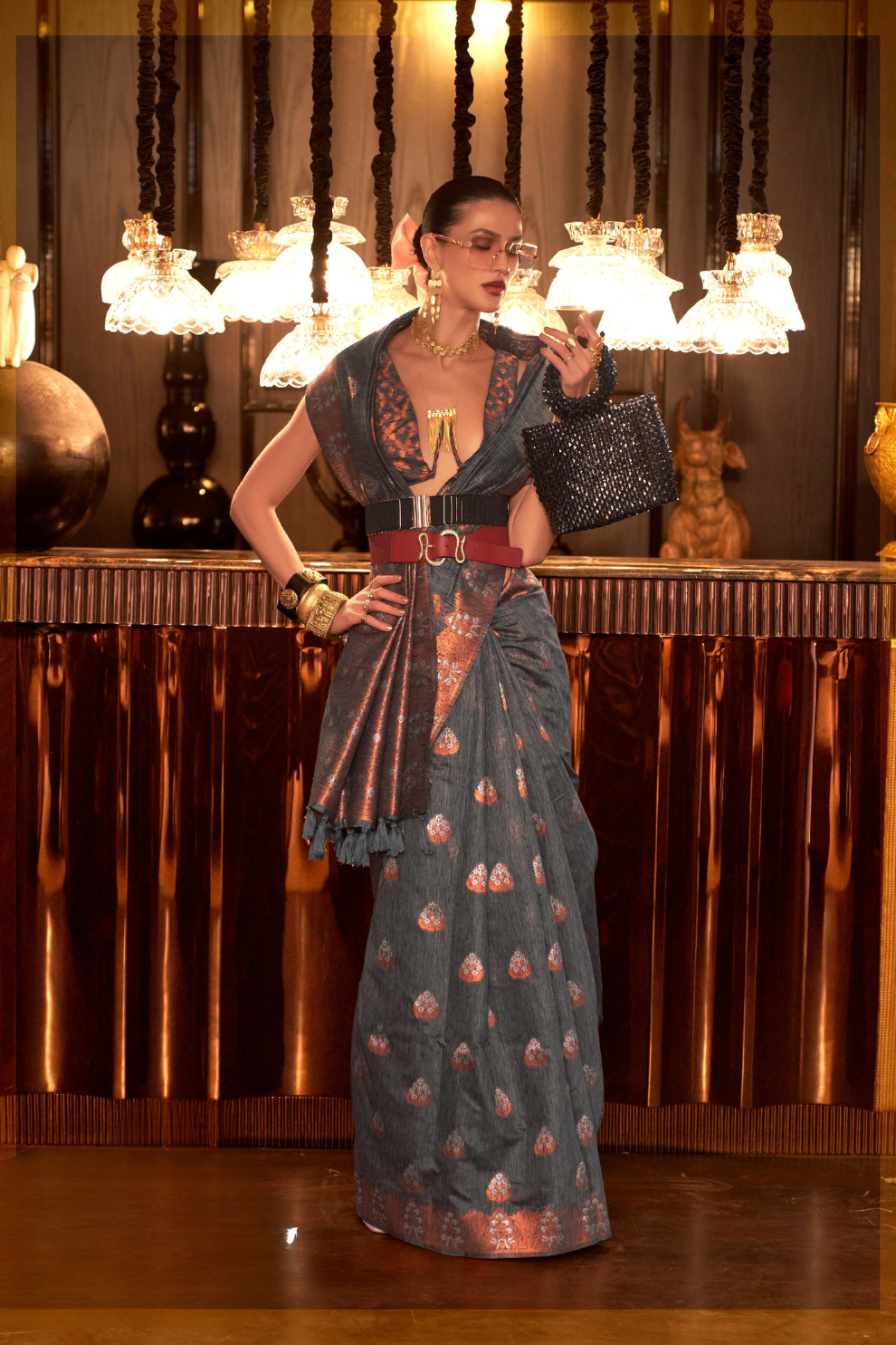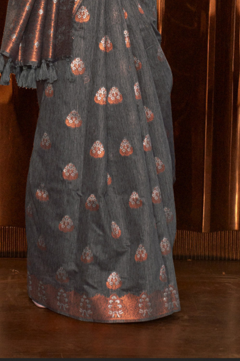 Multi Pure Linen Saree with Copper Zari Weaving Elegance