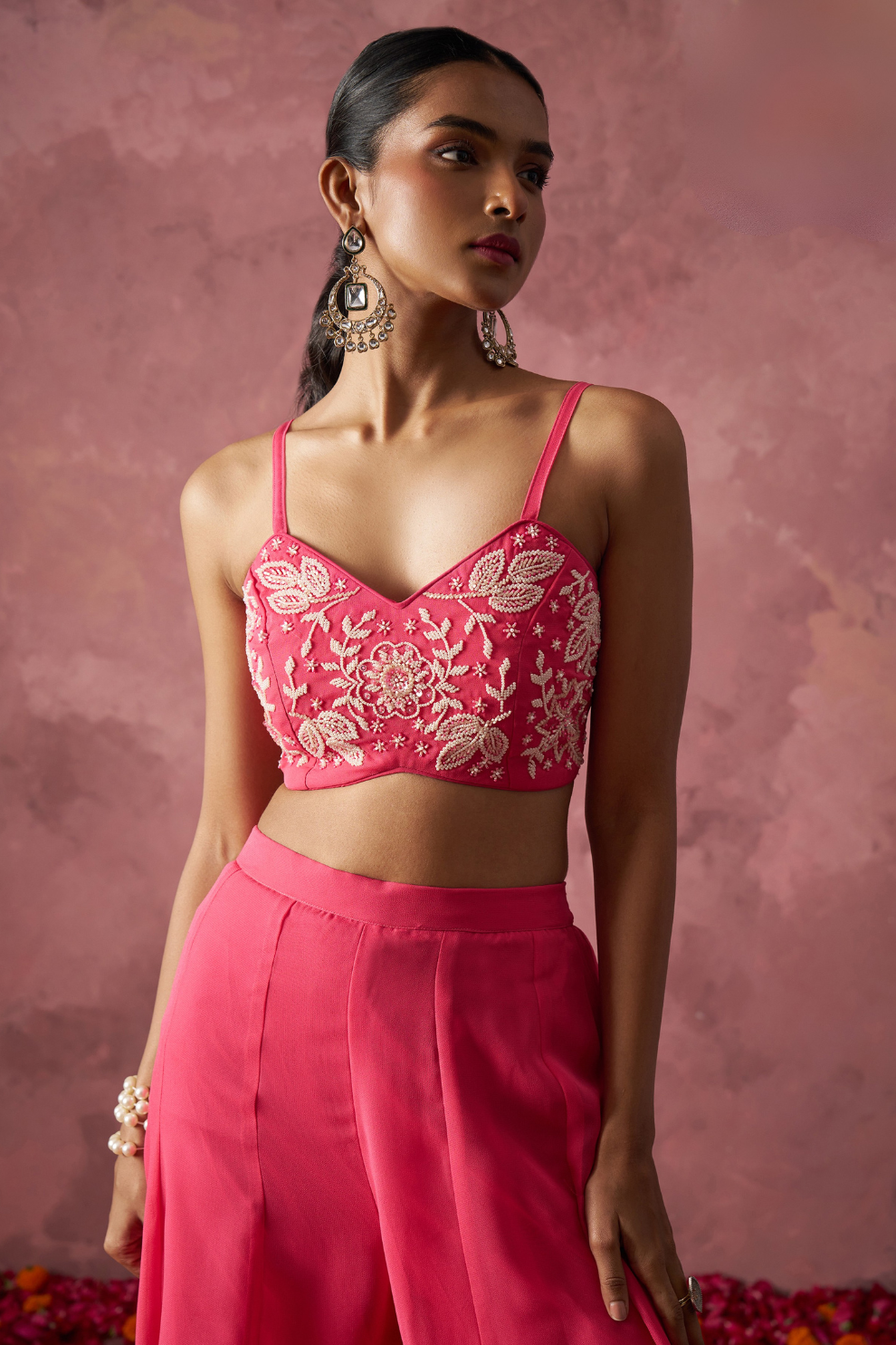 This peach pink georgette indo-western outfit comes with a beautifully hand-embellished shrug that adds grace and sophistication. Crafted from soft, flowy georgette fabric, it offers comfort with an elegant silhouette. The intricate handwork on the shrug creates a statement look ideal for festive events or intimate ceremonies. Whether you're attending a pre-wedding function or a special evening, this outfit from LaVante Fashion ensures effortless charm.
