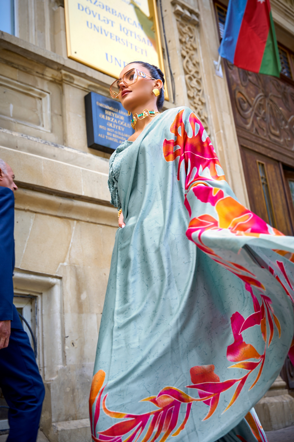 Step into refined elegance with this Printed Satin Creep Saree, featuring a luxurious smooth texture and contemporary styling. The soft satin fabric glides effortlessly over the body, offering a flattering and graceful drape. Eye-catching prints bring a fresh, modern touch, making it ideal for casual gatherings, office wear, or semi-formal occasions. Lightweight and easy to wear, this saree combines comfort with statement style. Redefine your everyday ethnic wardrobe with the sophisticated charm of LaVante Fashion.