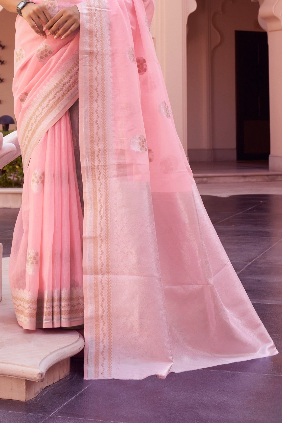 Pure Linen Silk Saree with Traditional Hand Weaving Design