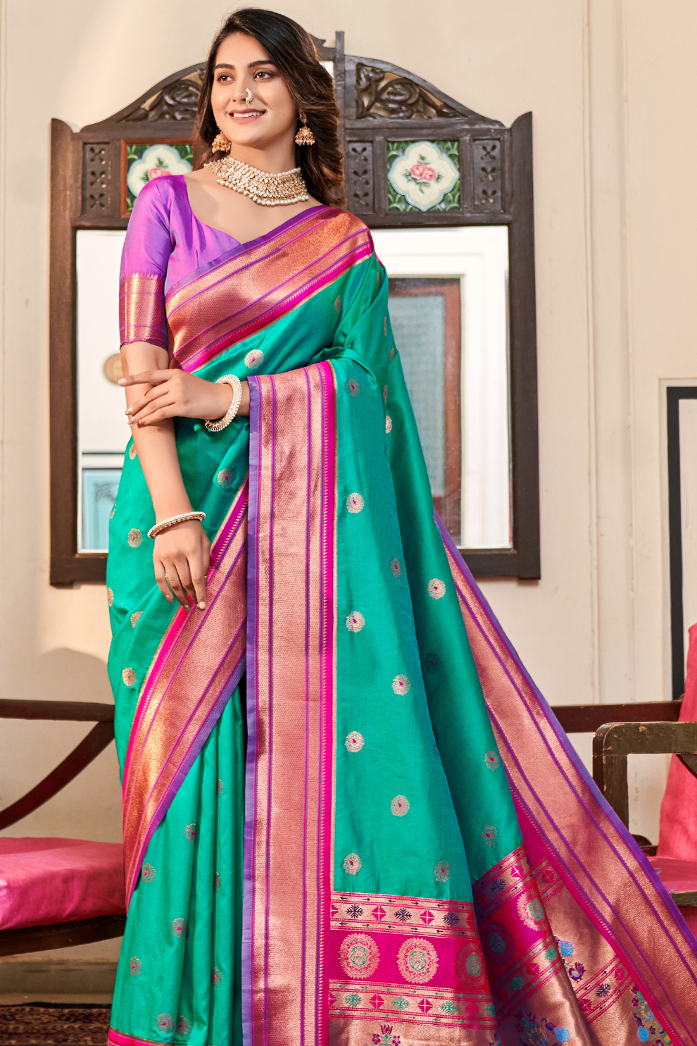 LaVante Fashion brings you the timeless beauty of pure Paithani silk, known for its luxurious texture, traditional weaving, and rich heritage. Woven with precision and pride, this fabric showcases classic motifs and vibrant colors, often highlighted with intricate zari work. Ideal for creating heirloom-quality sarees, blouses, and festive ensembles, Paithani silk reflects the cultural essence of Maharashtra and the grandeur of Indian craftsmanship.