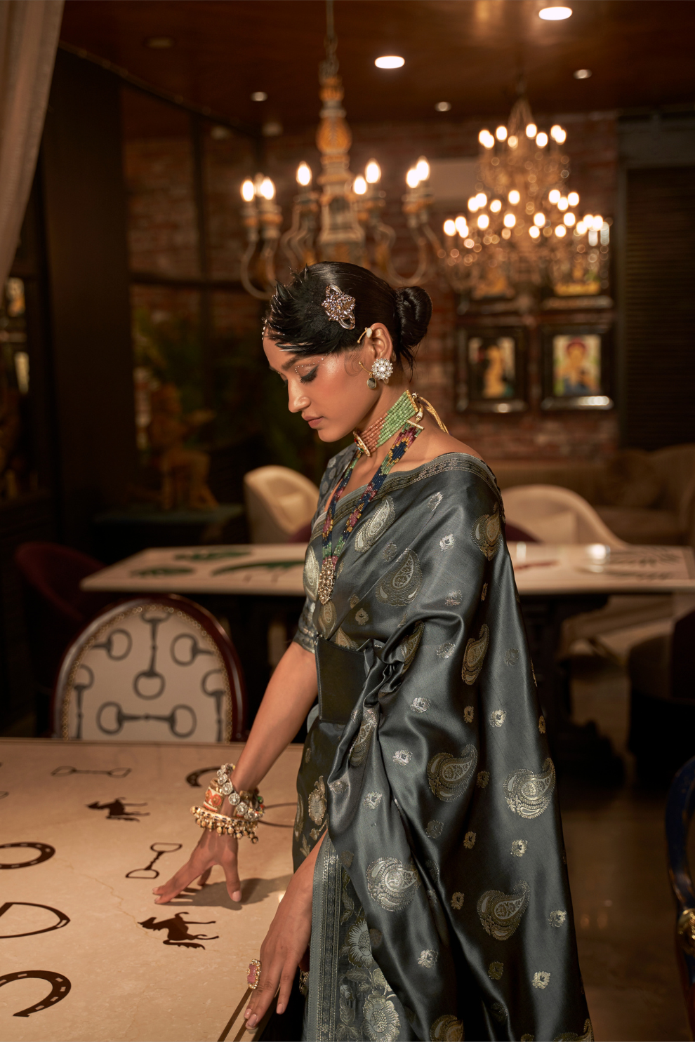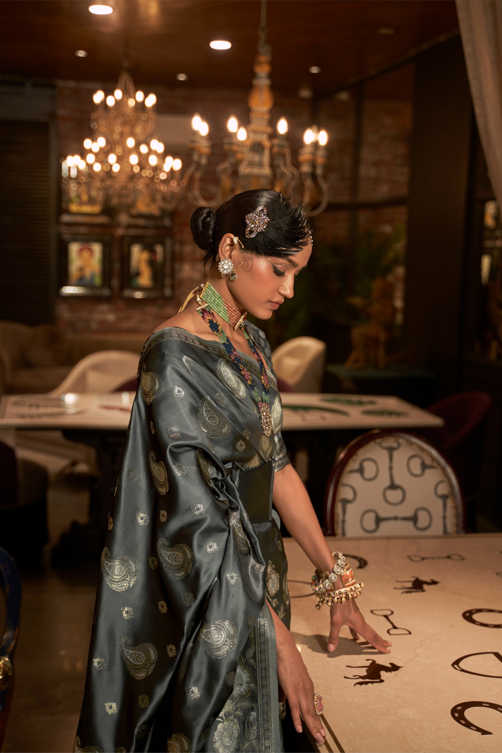 Experience luxurious grace with this Pure Satin Saree featuring Elegant Handloom Weaving Design for a timeless ethnic look. The soft, glossy satin fabric offers a fluid drape and rich texture that enhances your silhouette with every move. Intricate handloom patterns add depth and artisanal beauty, making it ideal for festive events, parties, and traditional celebrations. Lightweight and regal, it blends comfort with sophistication. Define your ethnic elegance with LaVante Fashion.