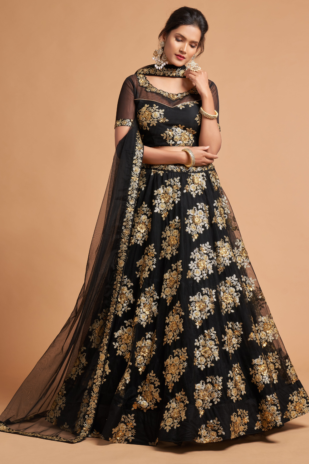 Fabric (Lehenga): Premium Georgette with Zari & Multi-Sequins Embroidery
