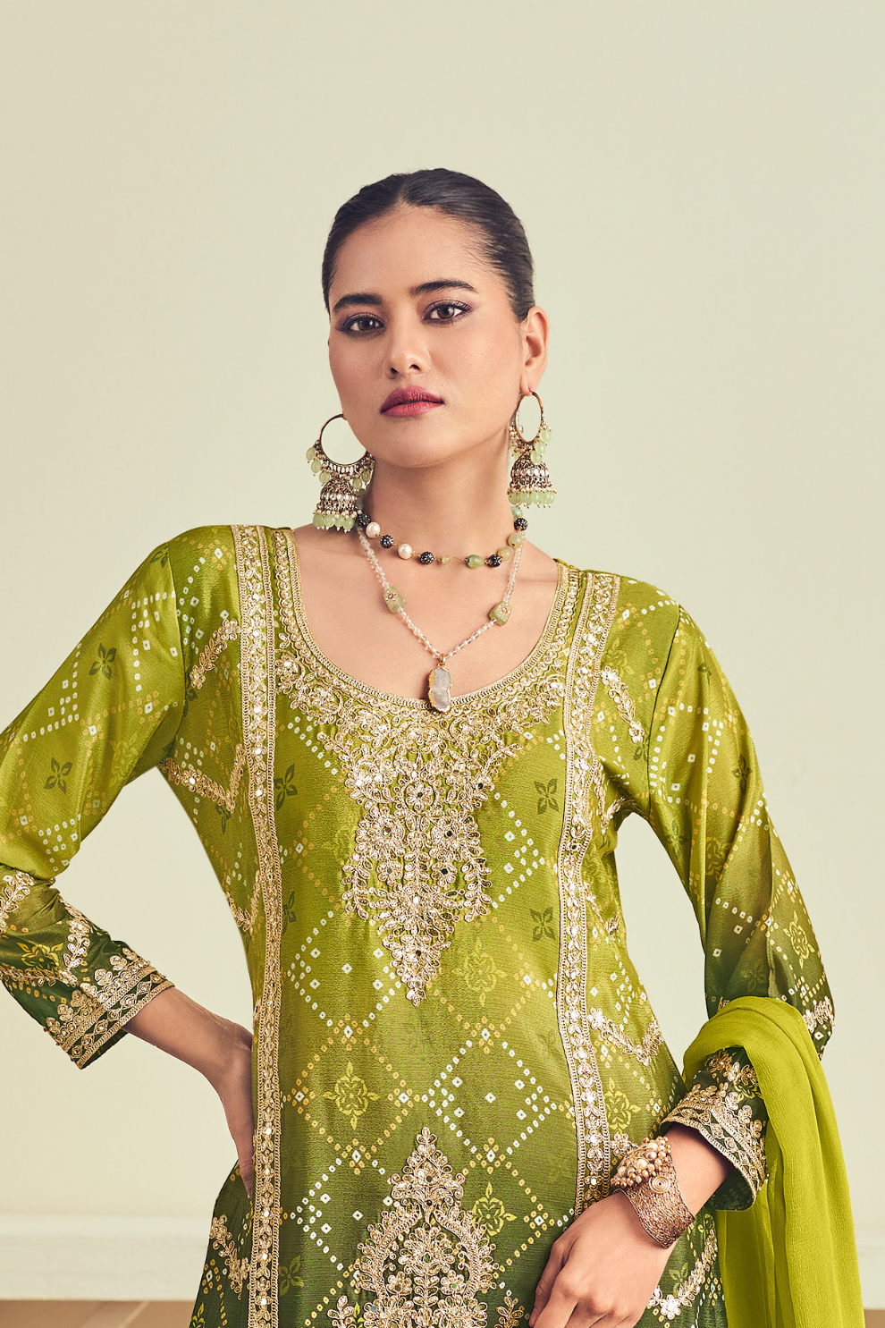 Elevate your ethnic wardrobe with LaVante Fashion’s exclusive Chinnon Palazzo Suit, a perfect blend of elegance, tradition, and modern sophistication. Crafted from luxurious Chinnon fabric this ensemble drapes like a dream and offers unmatched comfort with every wear.
