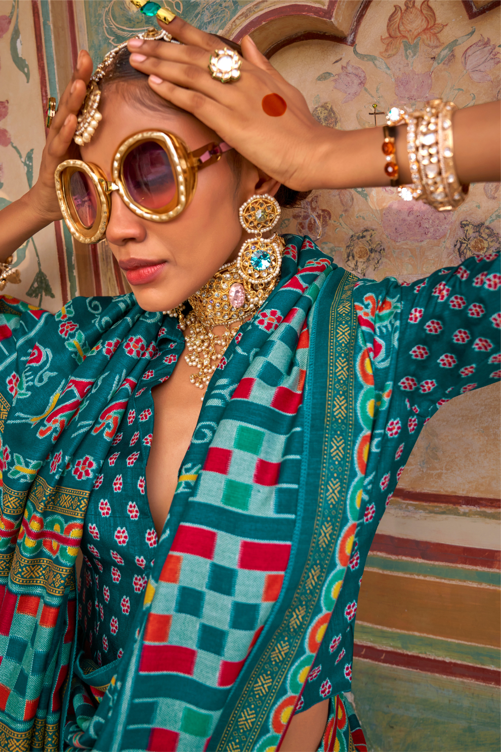Sea Festive Wear Saree with Patola Print
