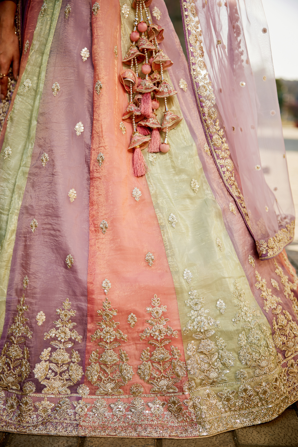 Fabric (Lehenga): Soft Tissue with Satin Lining and Sequins Embroidery