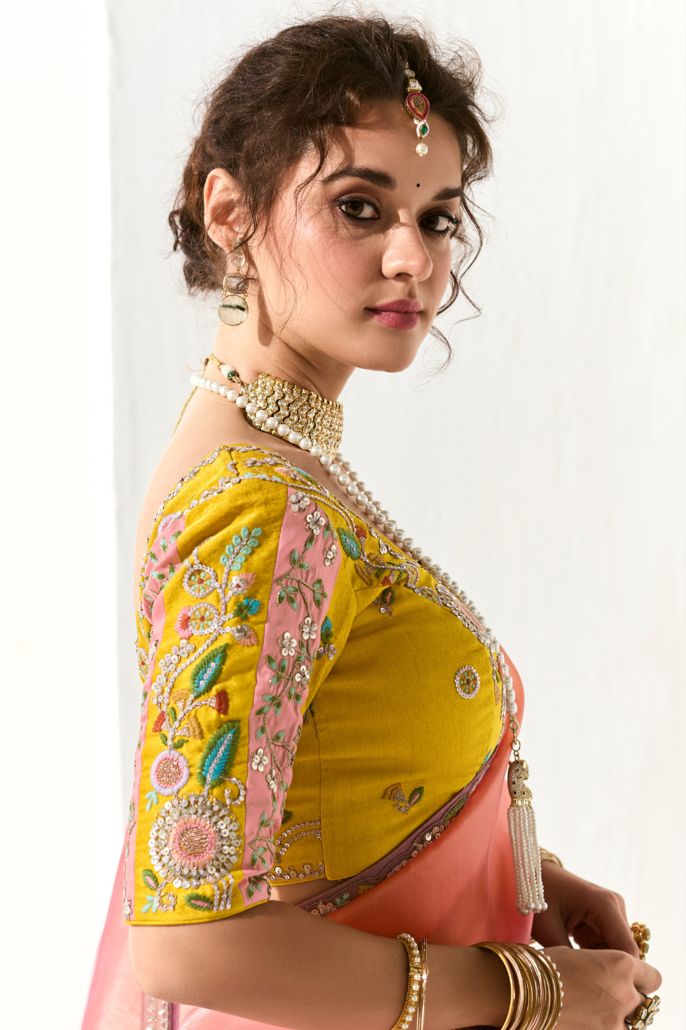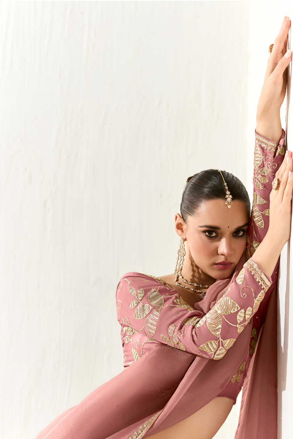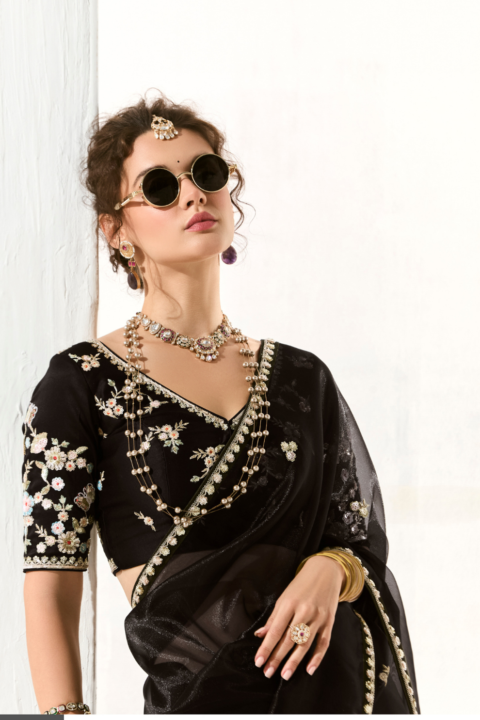 Add a touch of regal elegance to your wardrobe with this exquisite Tissue Saree featuring a heavy embroidered border. The lightweight fabric glows with a soft sheen, while the detailed embroidery adds richness and charm to the overall look. Perfect for weddings, receptions, and festive celebrations, this saree offers both comfort and grandeur. Its graceful drape and intricate border work make it a statement piece. Choose LaVante Fashion – where timeless tradition meets designer finesse.