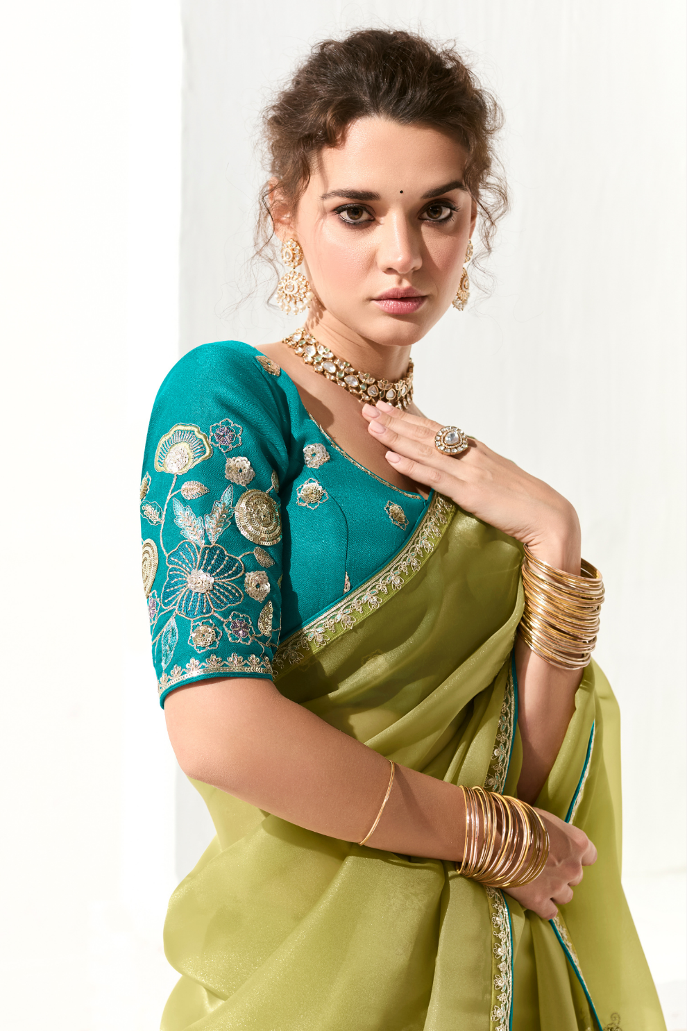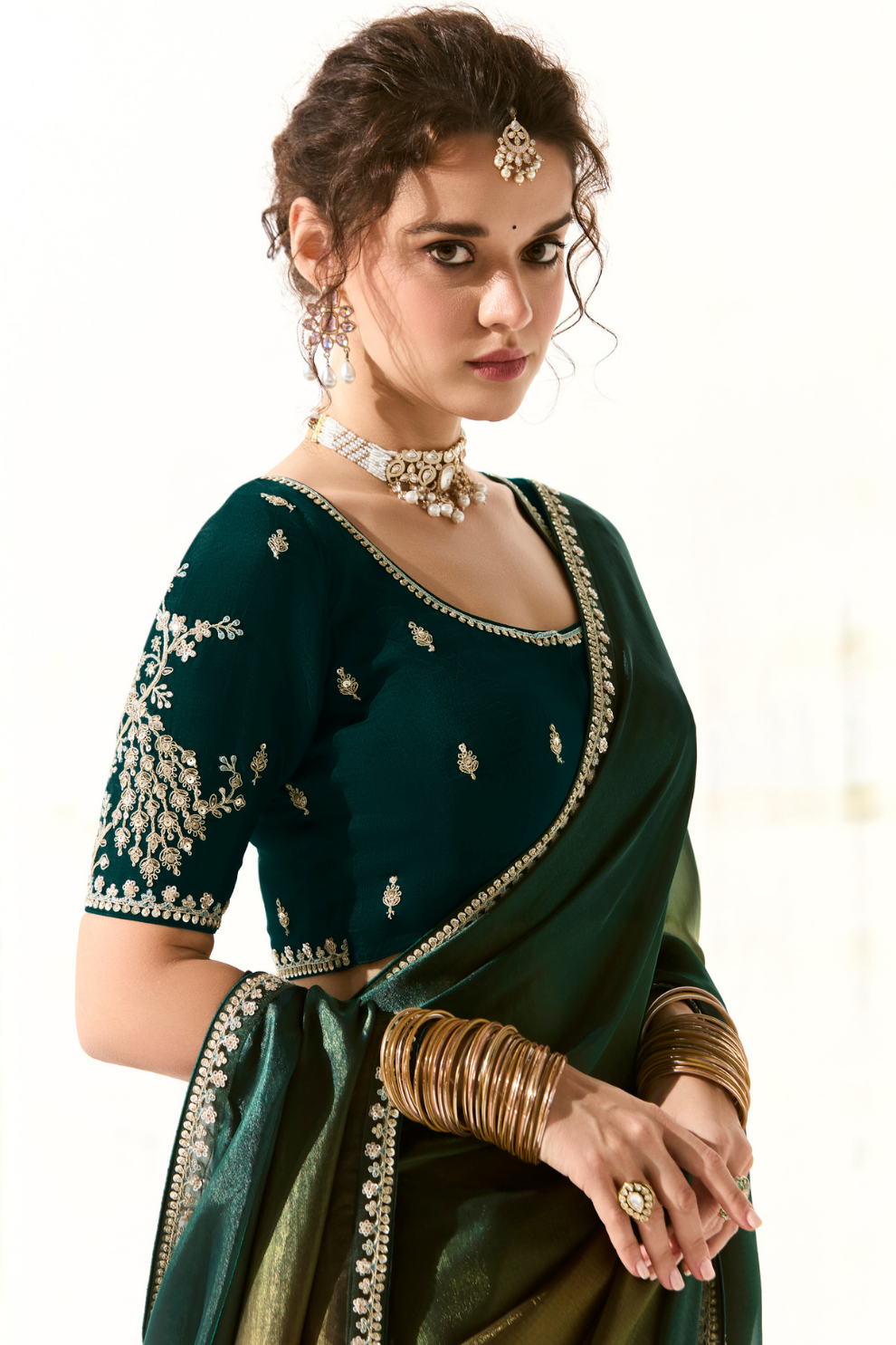 Tissue Silk Saree with Heavy Embroidered Border for Grand Occasions