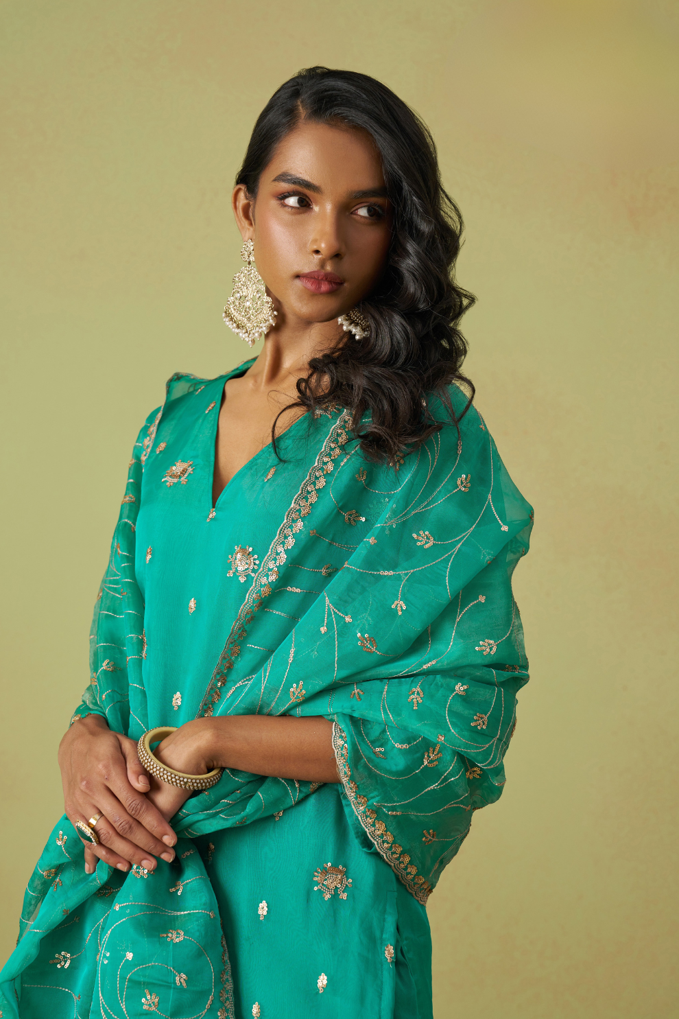 This elegant sky blue organza kurta set is crafted to bring a fresh and graceful look to your festive wardrobe. Made from premium organza fabric, the kurta features delicate embroidery work that adds subtle sophistication and charm. The set includes a matching bottom and dupatta, designed to complement the kurta perfectly. Lightweight and breathable, this ensemble is ideal for weddings, celebrations, and special gatherings. Embrace timeless tradition with a modern touch in this stunning kurta set from LaVante Fashion.