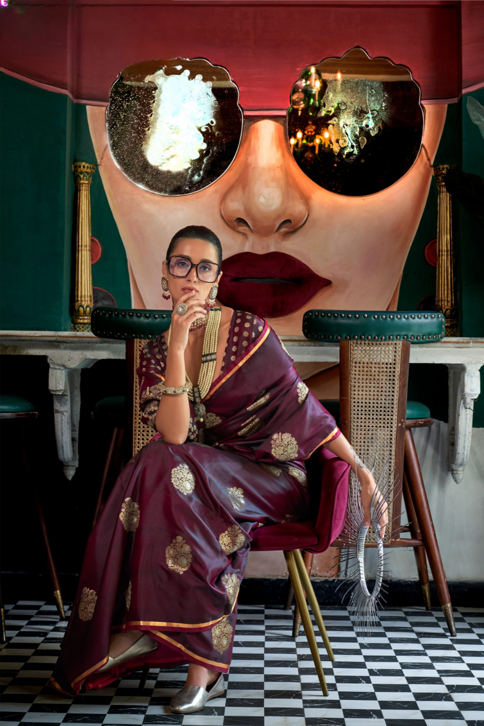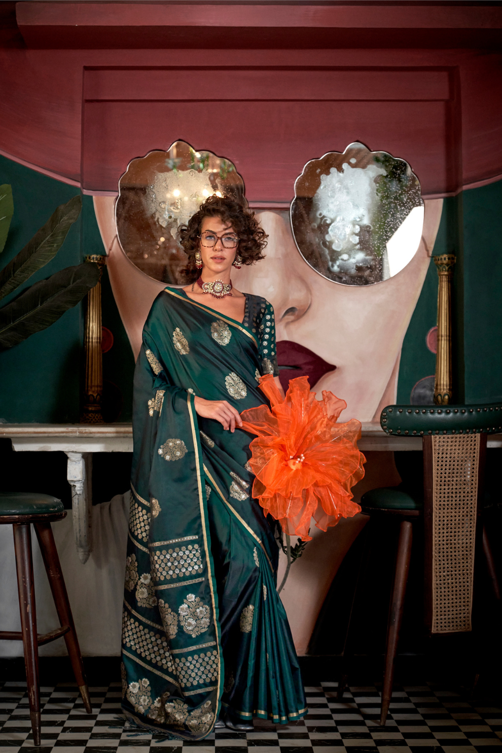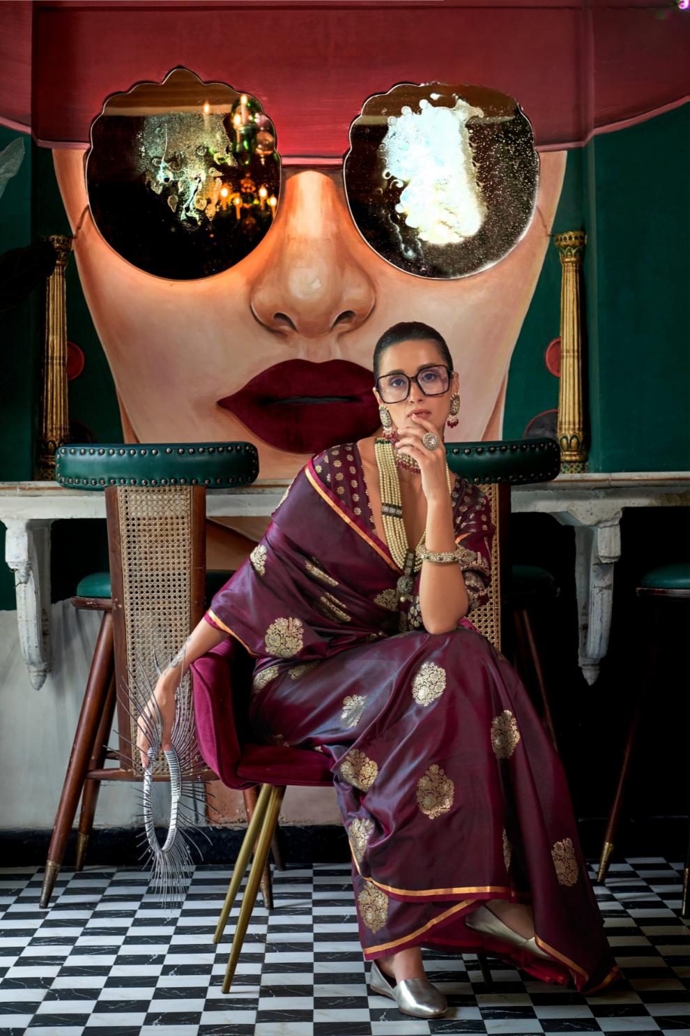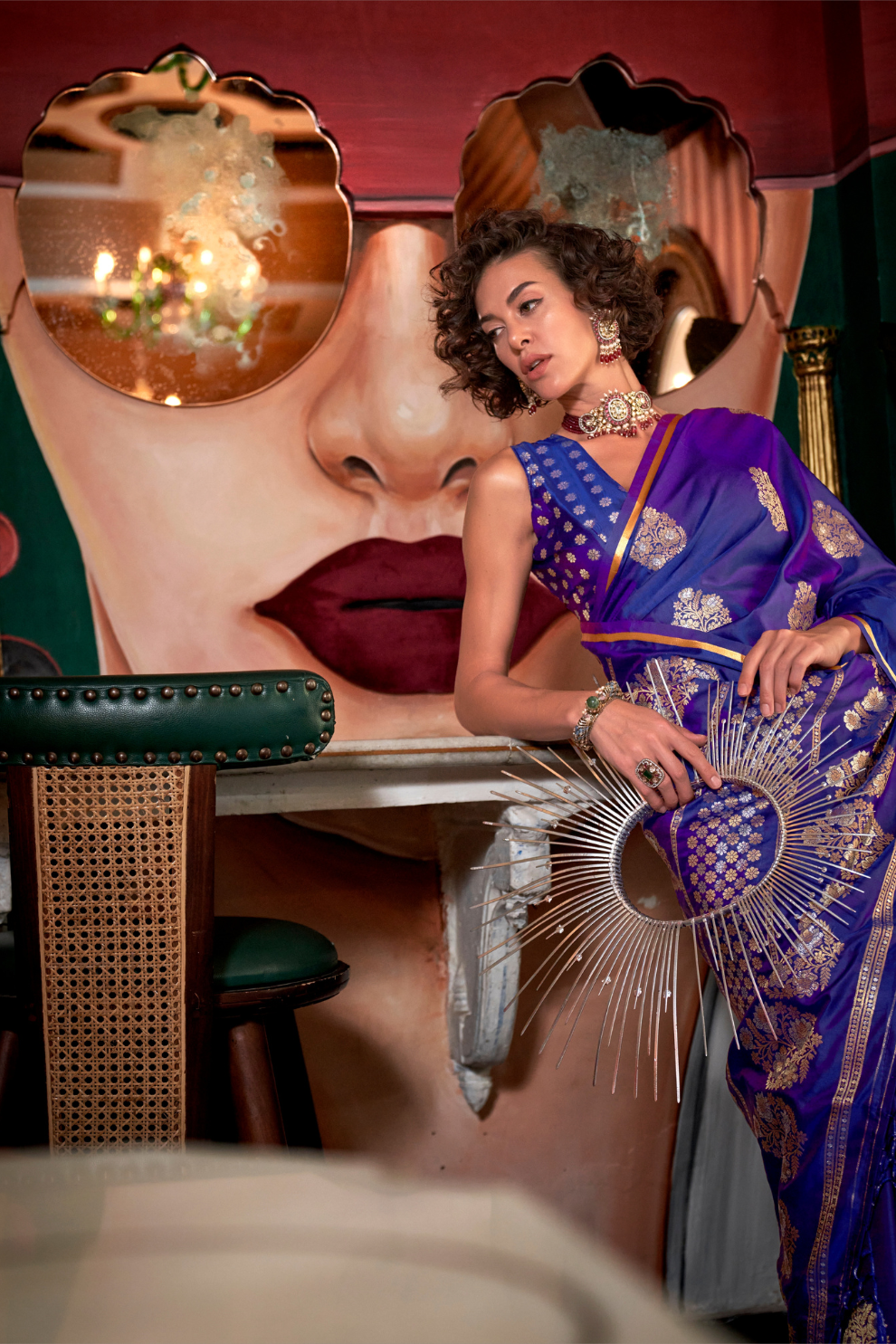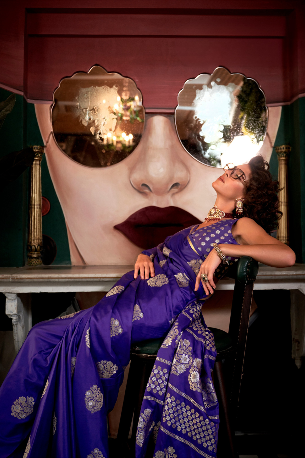 Step into regal elegance with this Banarasi Satin Silk Saree, featuring intricate dual Zari motifs that radiate timeless charm. The glossy satin silk fabric offers a smooth, rich drape that flows gracefully, ideal for weddings, festive celebrations, and grand occasions. The blend of gold and silver Zari weaving creates a striking visual contrast rooted in traditional craftsmanship. With its luxurious texture and elegant detailing, this saree is a perfect expression of ethnic sophistication. Redefine festive wear with LaVante Fashion