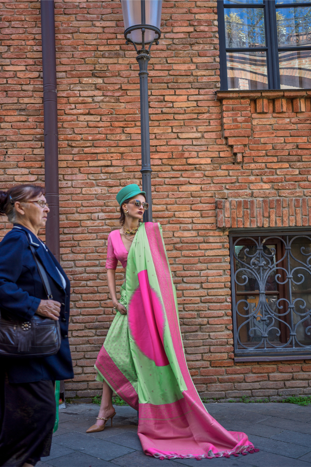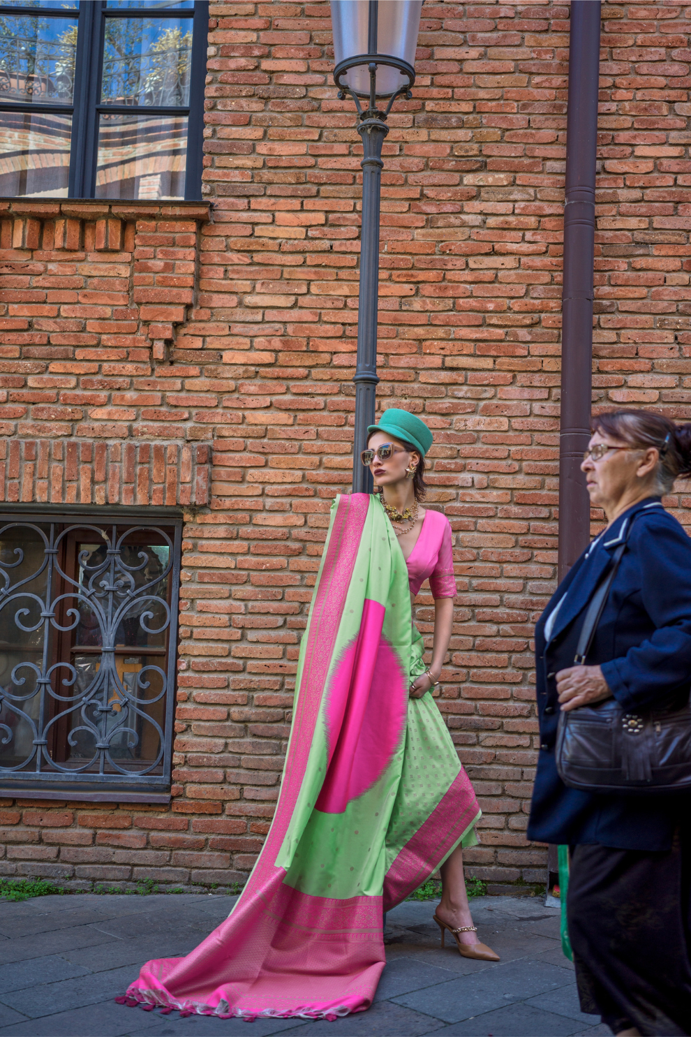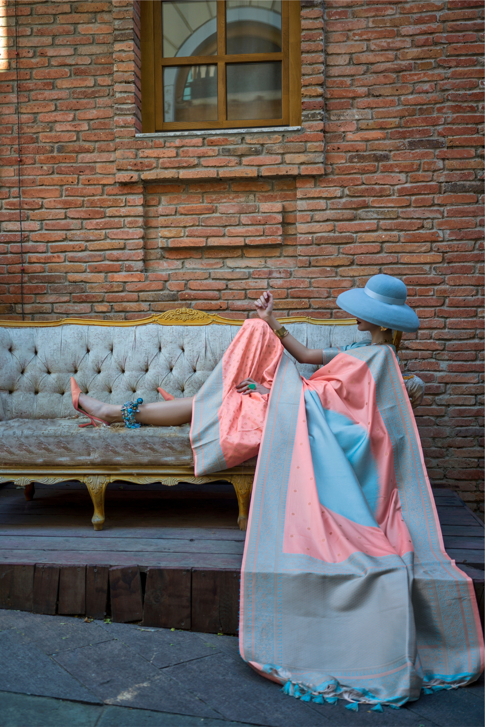 Drape yourself in timeless elegance with this Banarasi Soft Silk Saree, featuring intricate Zari weaving that reflects rich Indian heritage. The soft silk fabric offers a smooth, luxurious drape that feels light and graceful, perfect for festive occasions, weddings, and cultural celebrations. Traditional motifs and fine detailing add a regal touch to its overall appeal. This saree beautifully blends comfort with classic sophistication. Celebrate your ethnic style with LaVante Fashion.