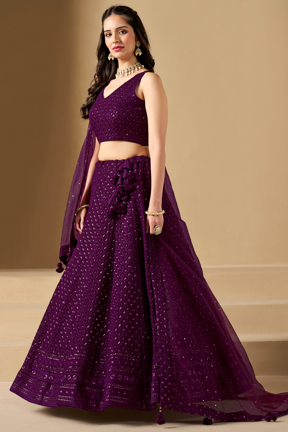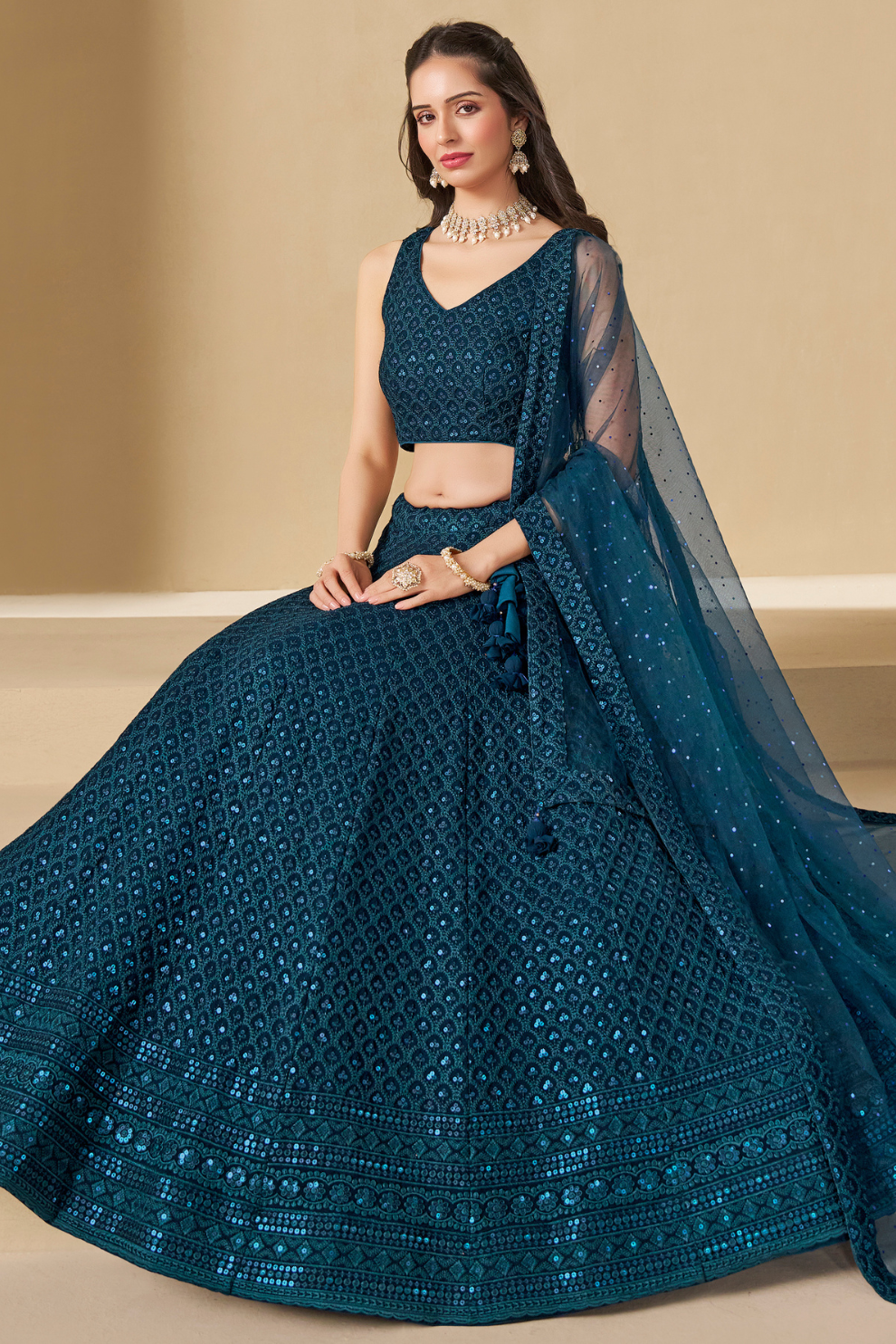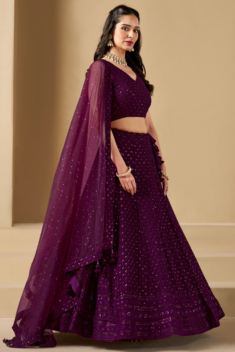 Make a stunning entrance with this captivating georgette lehenga choli, adorned with exquisite thread embroidery. The lightweight georgette fabric ensures graceful movement and all-day comfort, ideal for parties and festive occasions. Intricate thread work adds rich texture and elegance, enhancing its overall appeal. Paired with a beautifully crafted choli and matching dupatta, it offers a complete and stylish ethnic look. Step into celebrations with charm and confidence in LaVante Fashion party wear collection.
