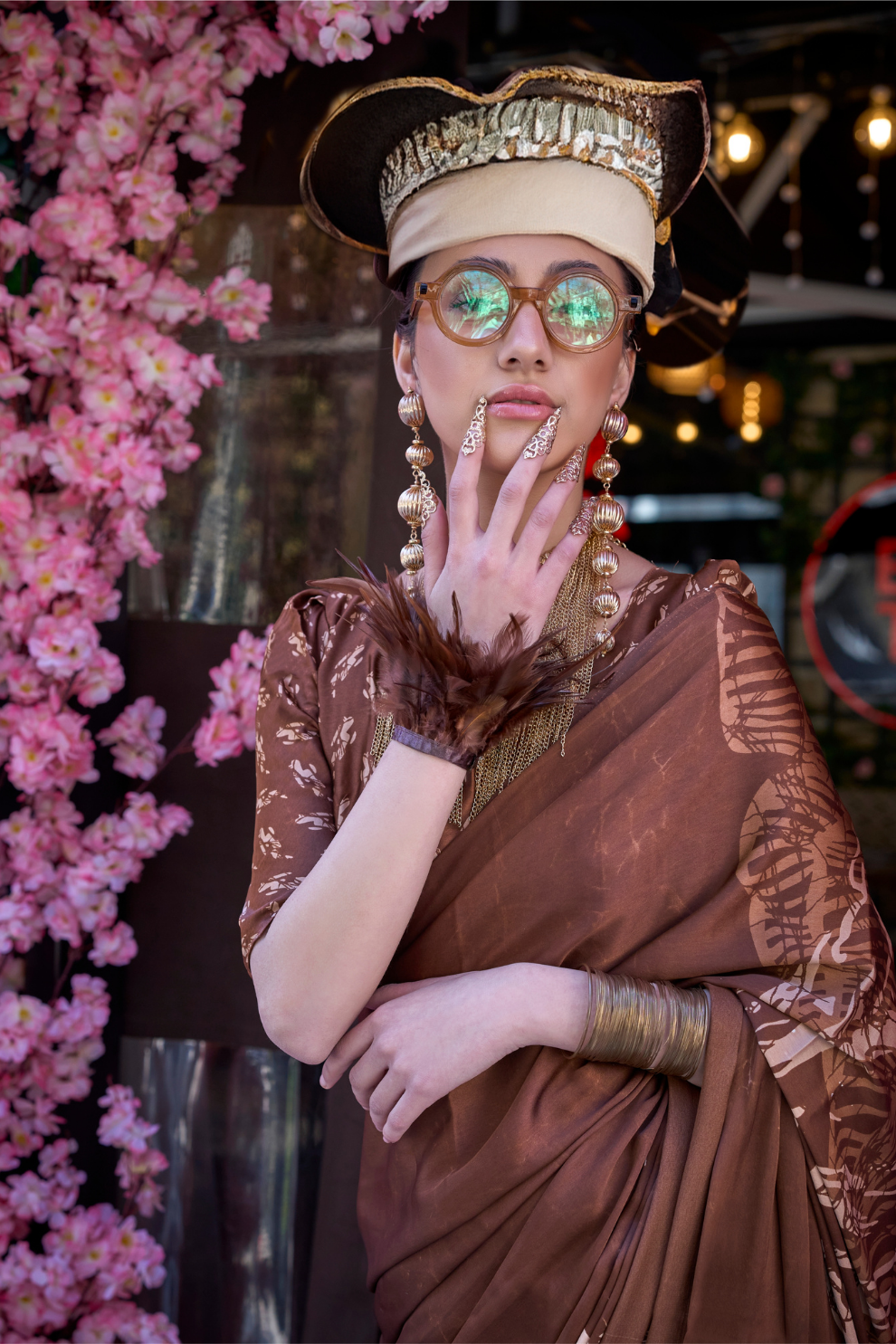 Contemporary Print Satin Crepe Saree with Chic Glossy Drape