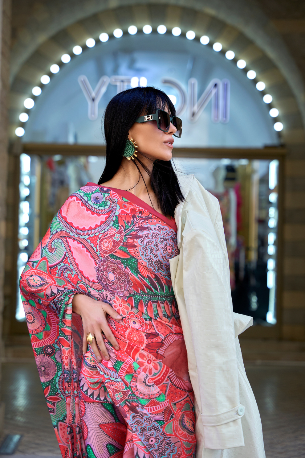 Elevate your ethnic style with this stunning Digital Print Satin Crepe Saree, a perfect blend of contemporary design and luxurious comfort. Crafted from premium satin crepe, the fabric feels buttery smooth against the skin and drapes effortlessly, creating a flattering and elegant silhouette. The digitally printed patterns bring out vibrant colors and intricate detailing, adding a modern twist to traditional attire. Ideal for festive events, celebrations, and stylish day wear, this saree is both lightweight and easy to carry. Redefine your ethnic wardrobe with the refined charm of LaVante Fashion.