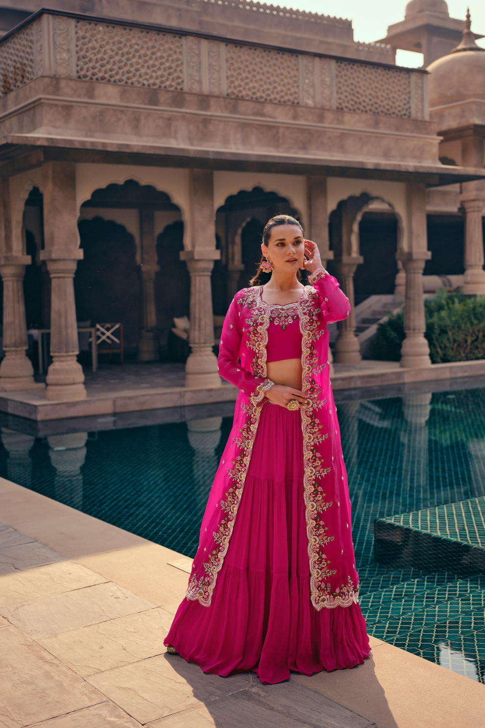 Discover the perfect fusion of heritage and haute couture with LaVante Fashion’s Chinnon Silk Indo-Western Wear. Crafted from luxuriously soft Chinnon silk, this ensemble is designed to make a bold style statement while offering supreme comfort and flow.Blending the richness of traditional Indian fabrics with contemporary cuts, this outfit is perfect for the modern woman who loves to embrace culture with a twist.