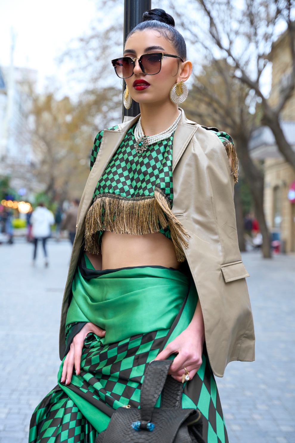 Japan Satin Printed Saree with Elegant Silken Drape Finish