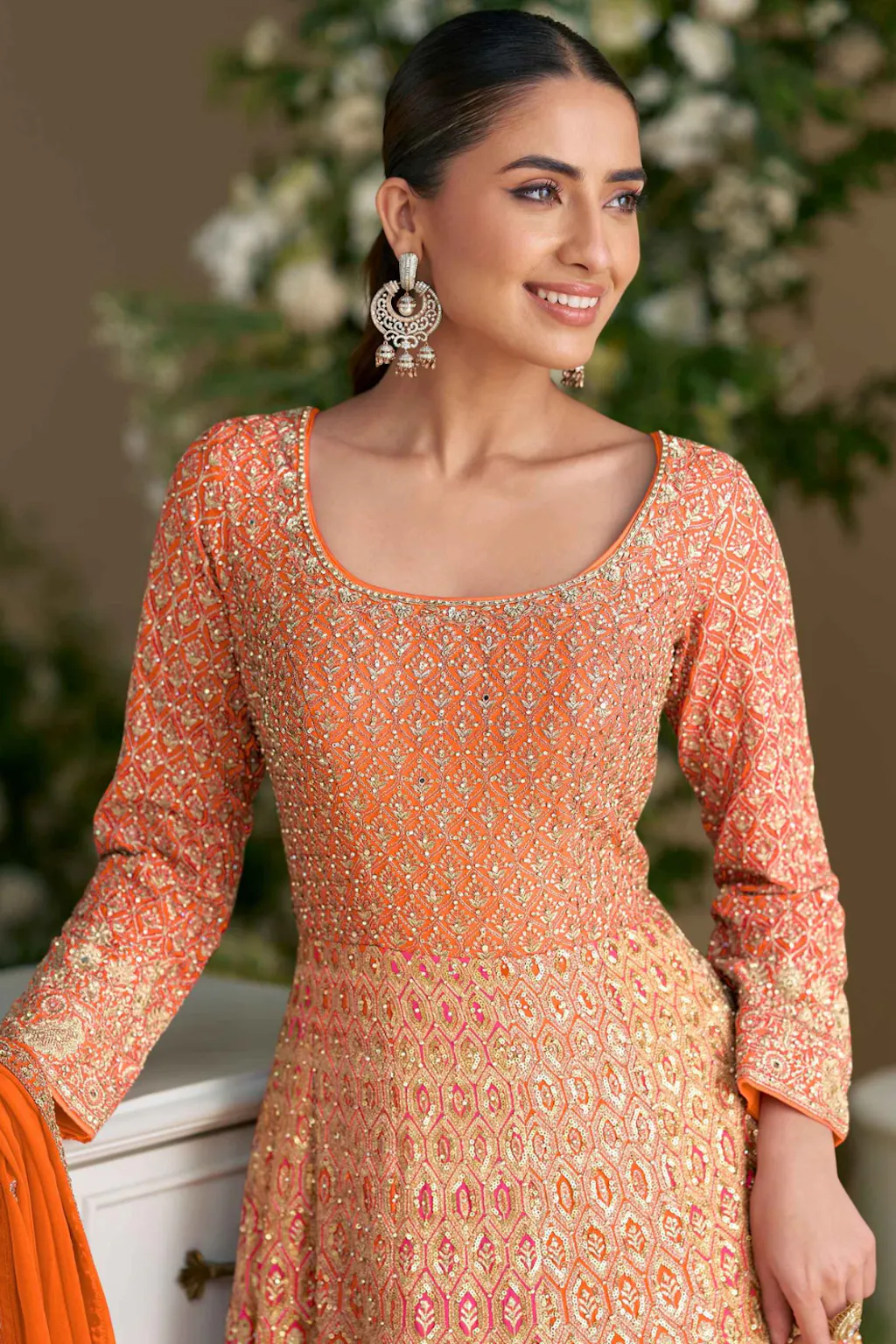 Orange Georgette Embroidered Sequin Anarkali Suit – Elegant Celebration Wear