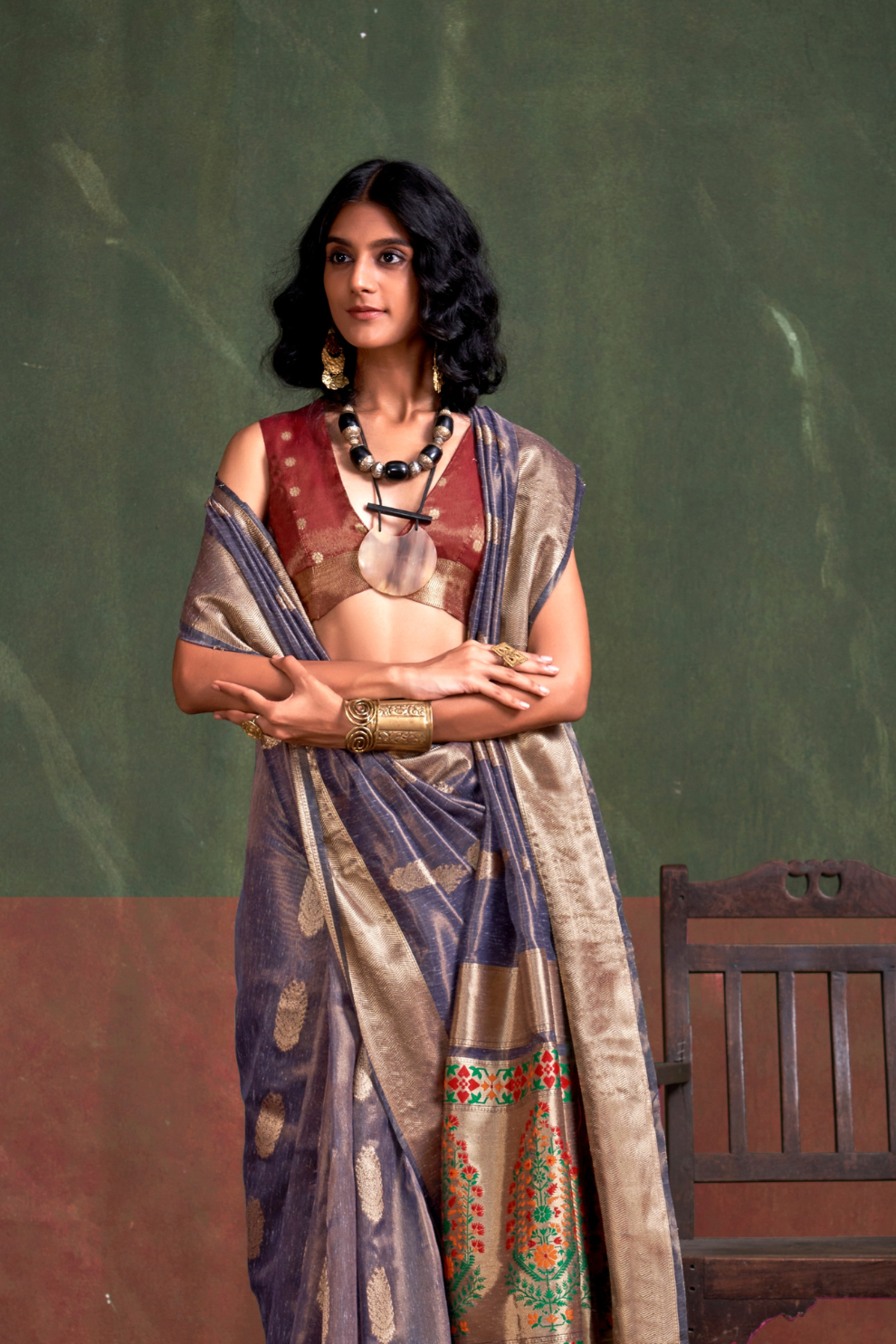 Paithani Zari Tissue Saree with Traditional Handloom Weaving