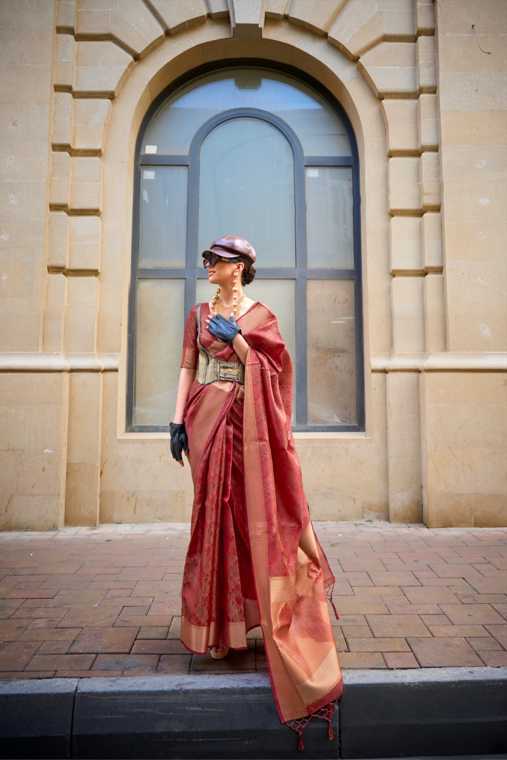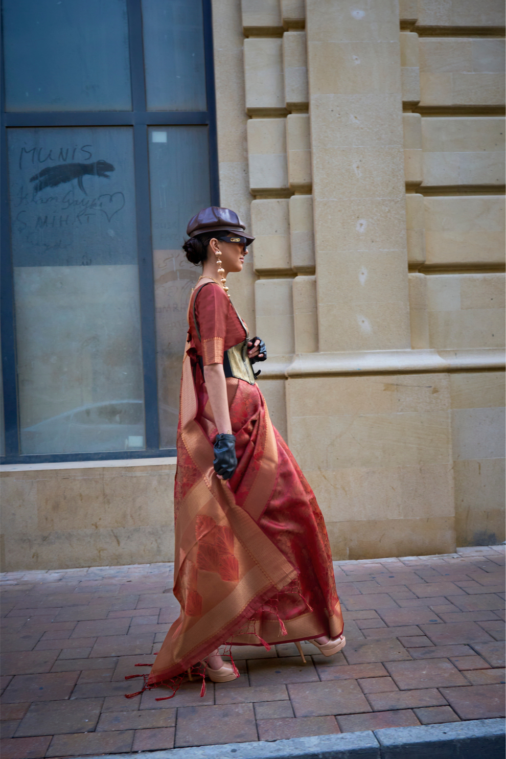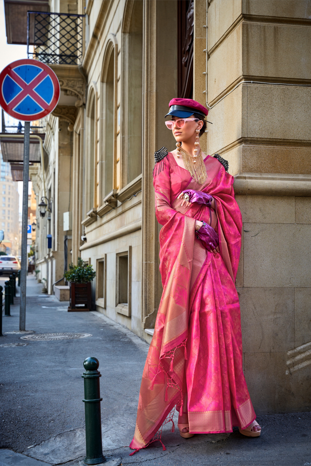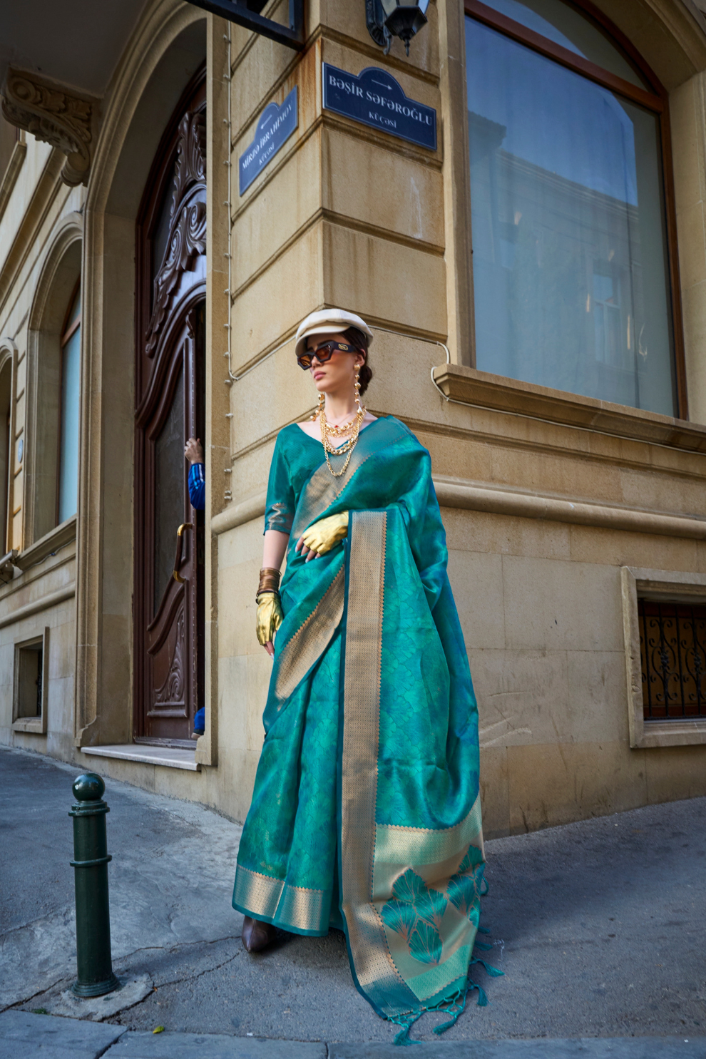 Step into refined elegance with this Pure Handloom Two Tone Organza Weaving Saree, a masterpiece of artisanal craftsmanship. Woven with delicate precision, the saree features a luxurious two-tone effect that shifts beautifully under light, paired with subtle zari weaving for added grace. The lightweight organza fabric offers a crisp, structured drape that enhances your silhouette, making it perfect for receptions, cultural gatherings, and elegant festivities. Elevate your ethnic look with this timeless creation from LaVante Fashion.