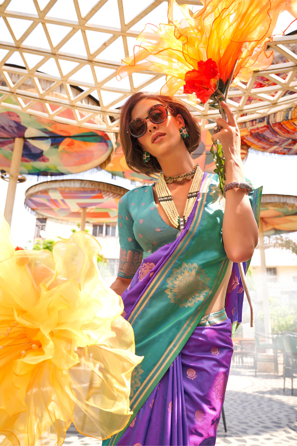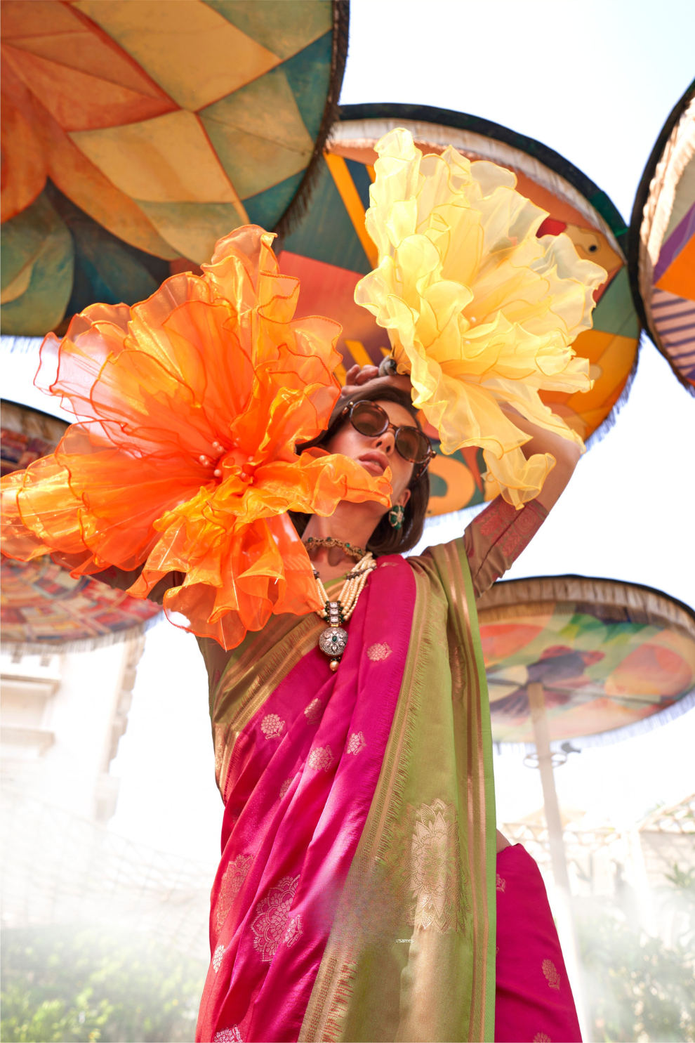 Pure Katan Banarasi Silk Blend Saree with Traditional Weaving