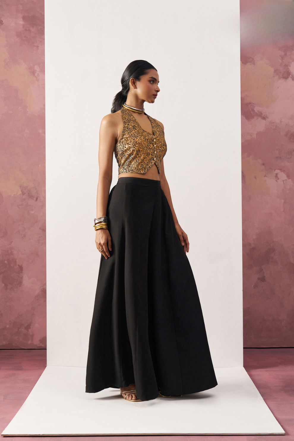 Step into elegance with this sophisticated black jacquard palazzo, designed specifically for evening parties. Crafted from rich jacquard fabric, it offers a flattering silhouette combined with comfortable wear. The intricate jacquard patterns add texture and depth, making it a standout piece for any formal or festive gathering. Perfectly versatile, this palazzo pairs beautifully with both traditional and contemporary tops. Elevate your party wardrobe with this timeless design from LaVante Fashion.