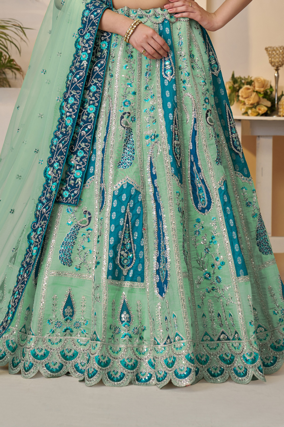 Celebrate timeless beauty with this traditional designer silk lehenga from LaVante Fashion, featuring elegant embroidery and intricate cut work that reflects heritage craftsmanship. Designed for those who cherish classic elegance with a refined touch, this lehenga blends tradition and sophistication effortlessly.The luxurious silk fabric, paired with fine detailing, creates a graceful silhouette—perfect for weddings, festive events, and grand celebrations. Make your special moments unforgettable with this stunning creation by LaVante Fashion.