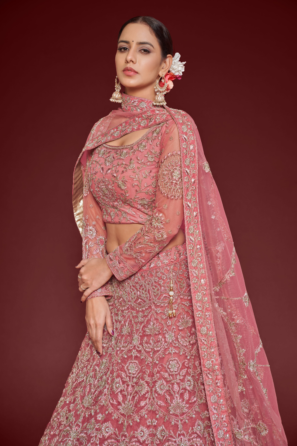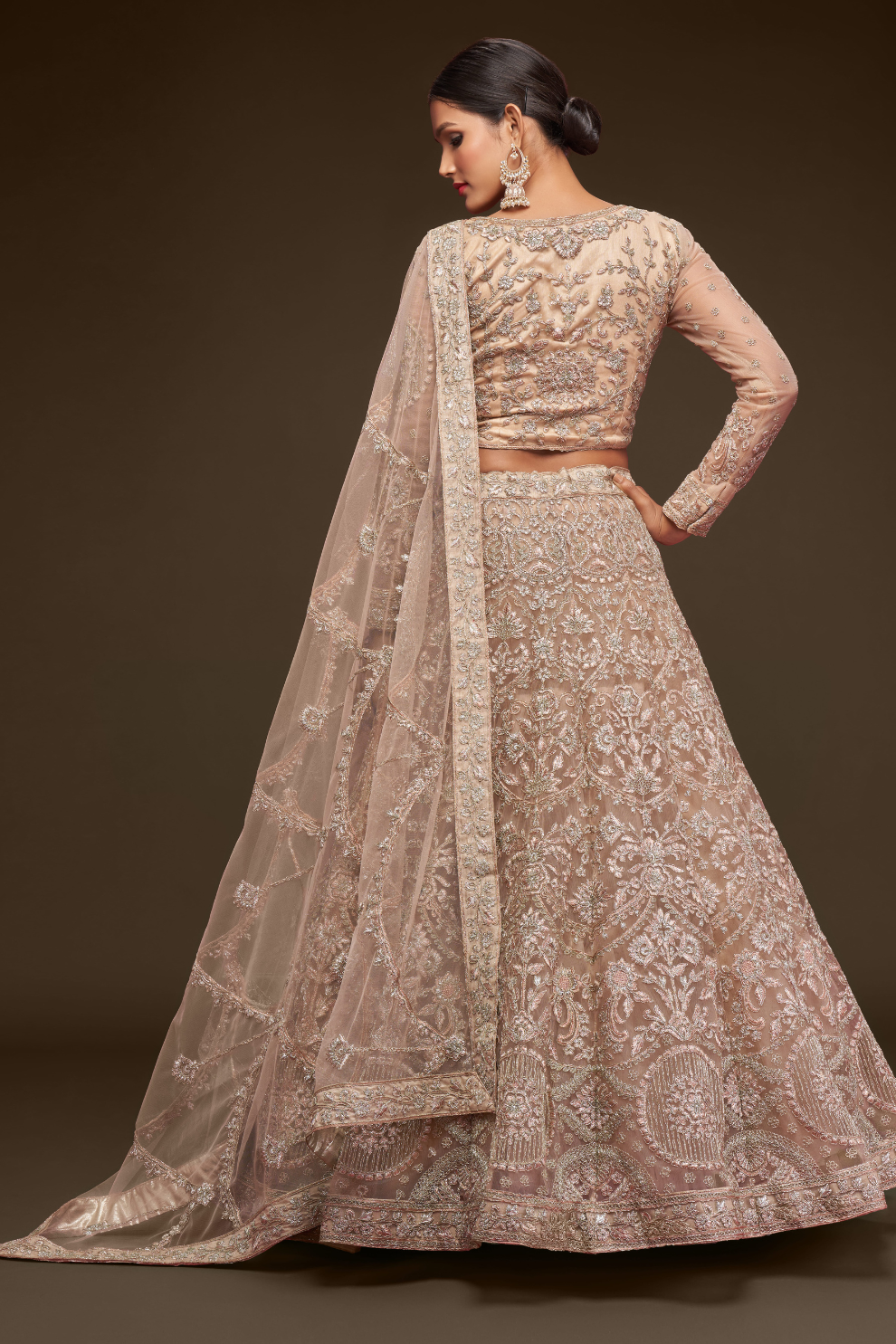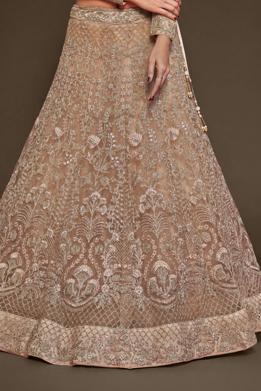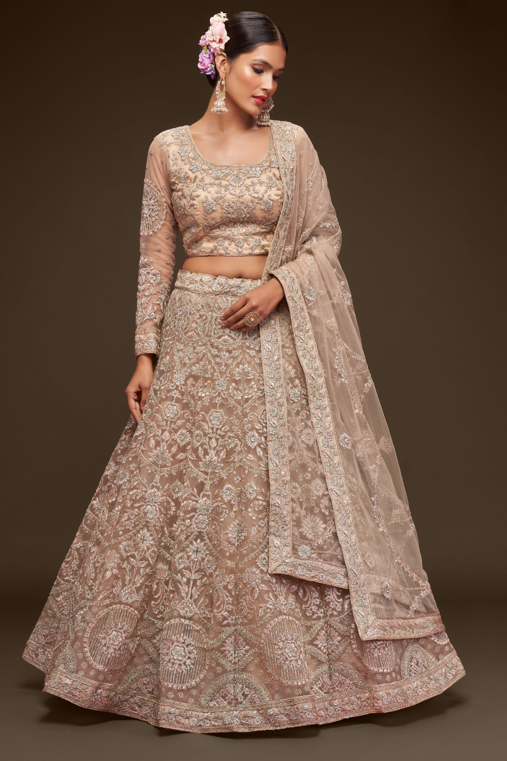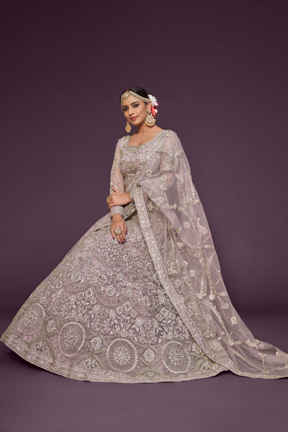 Turn heads at any wedding celebration with this trendy net Lehenga Choli, adorned with elegant dori embroidery. The lightweight net fabric flows beautifully, offering a dreamy and graceful silhouette. Intricate dori work adds depth and texture, giving the outfit a luxurious festive feel. Paired with a stylish choli and matching dupatta, this ensemble strikes the perfect balance between tradition and modern flair. Step into wedding festivities with charm and confidence in LaVante Fashion’s designer lehenga collection.
